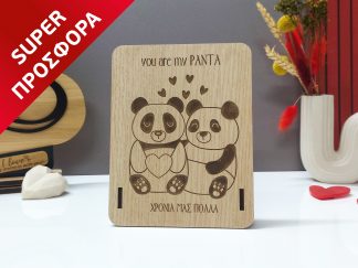 Ξύλινο Καδράκι “Panda Couple”
