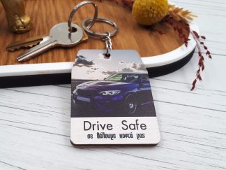 Ξύλινο μπρελόκ με εκτύπωση “Drive Safe”