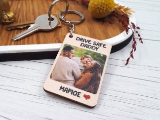 Ξύλινο μπρελόκ με εκτύπωση “Drive Safe Daddy”