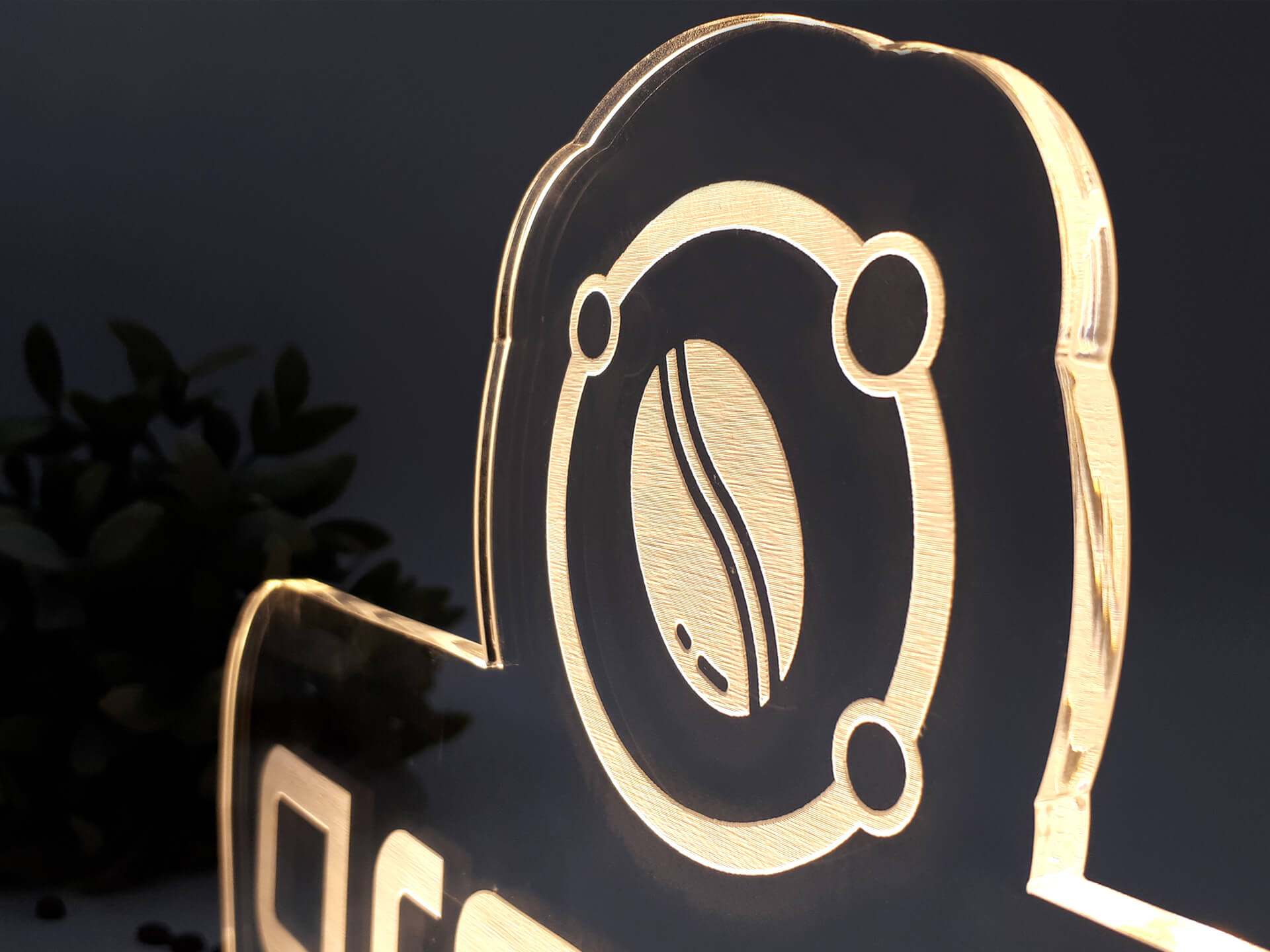 Φωτιστικό Led βασισμένο στο δικό σας λογότυπο! • Υλικά: Led ροζ χρώματος, Ακρυλικό διάφανο πάχους 6mm, Ξύλινη custom βάση • Περιέχει καλώδιο USB με φισάκι πρίζας • Το προϊόν διατίθεται σε συσκευασία δώρου