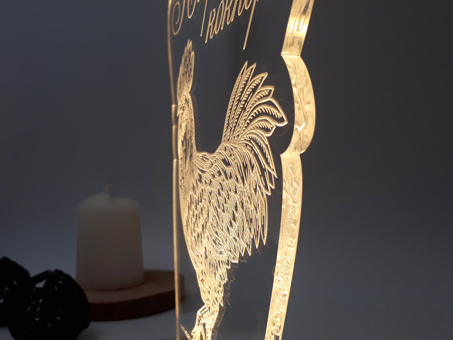 Ακρυλικό διάφανο πάχους 6mm, Ξύλινη custom βάση