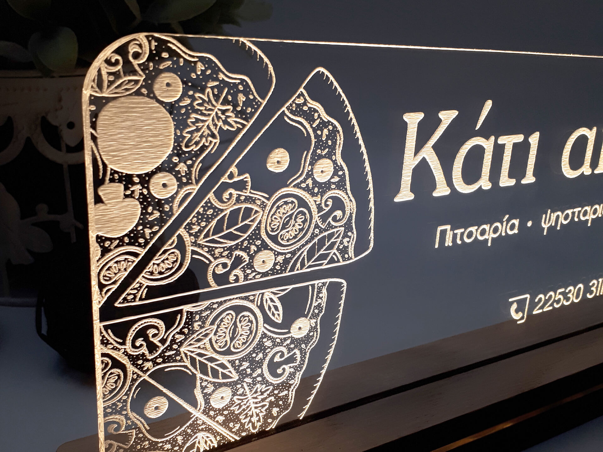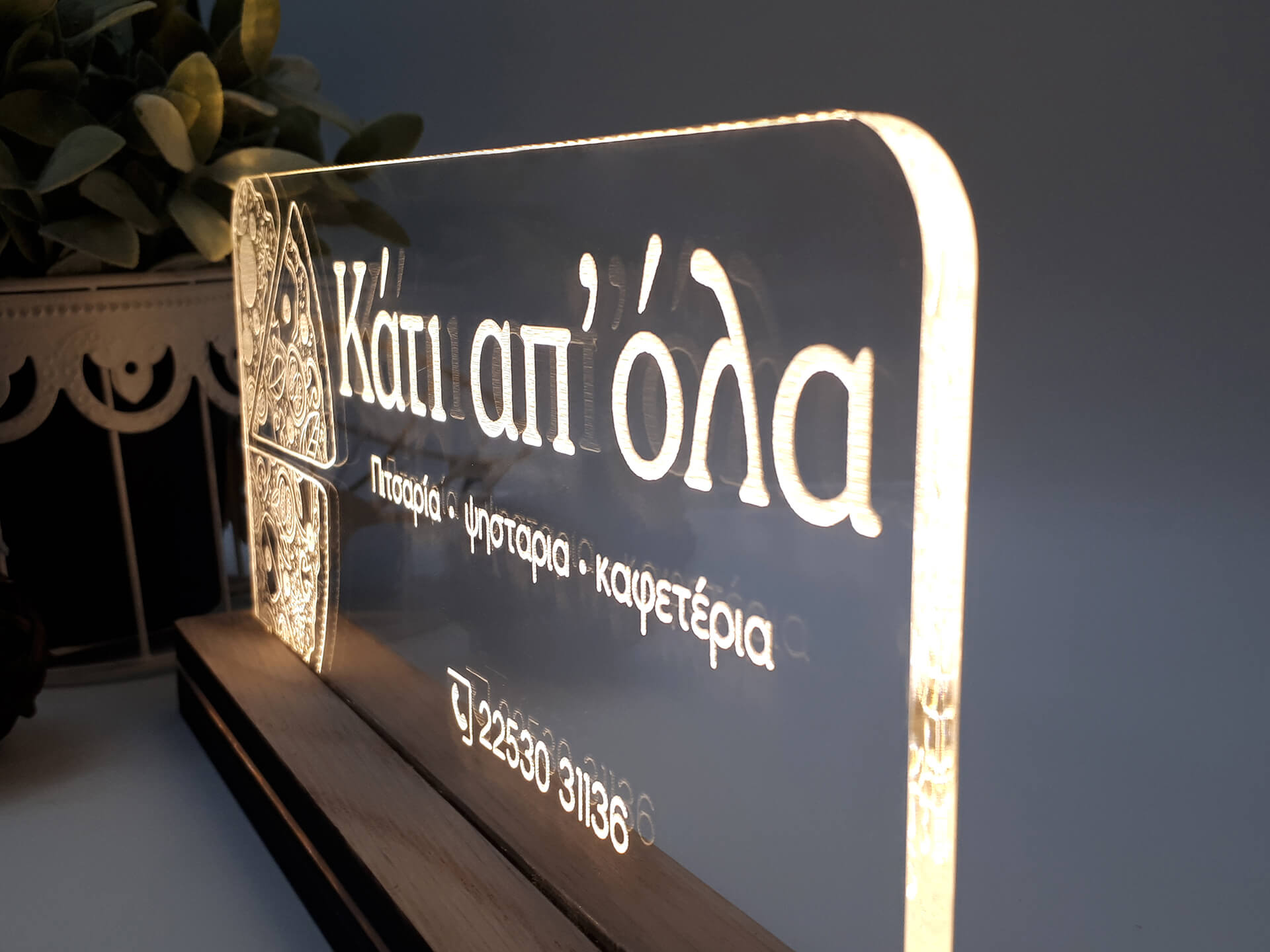 Ακρυλικό διάφανο πάχους 6mm, Ξύλινη custom βάση