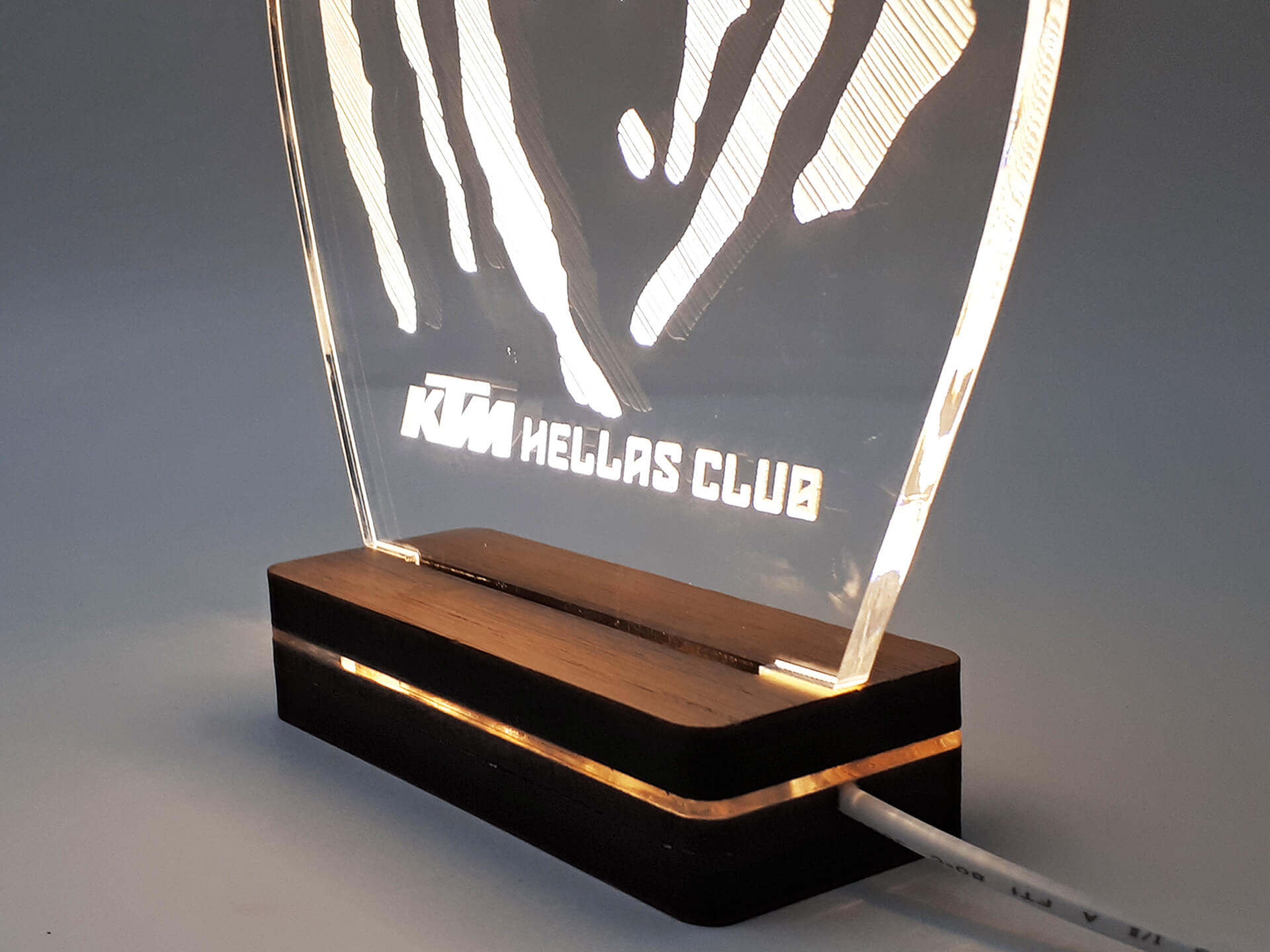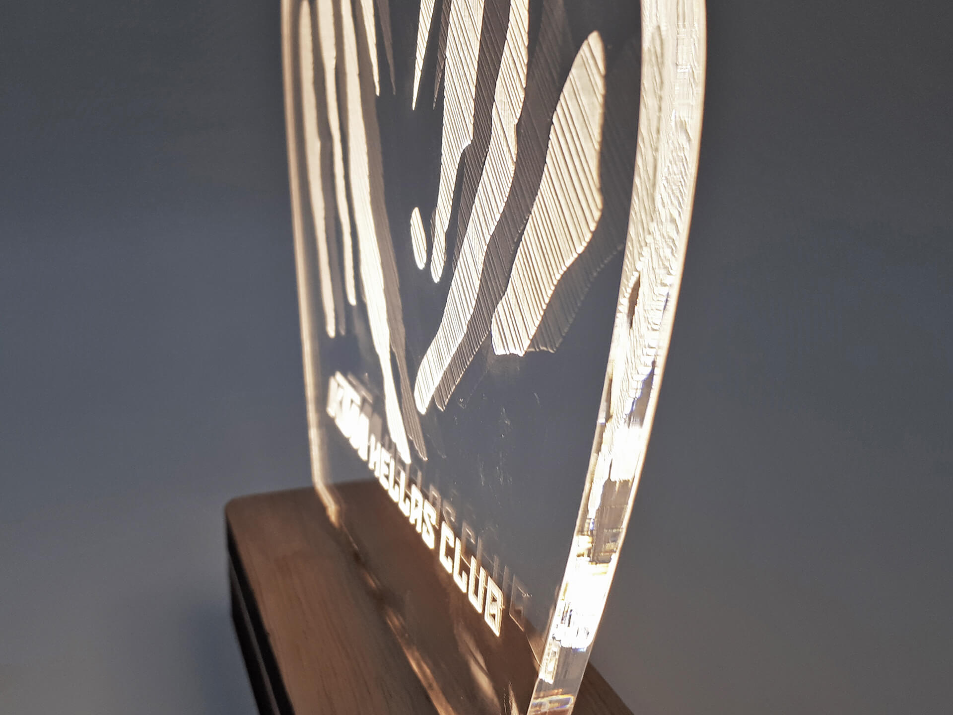 Ακρυλικό διάφανο πάχους 6mm, Ξύλινη custom βάση