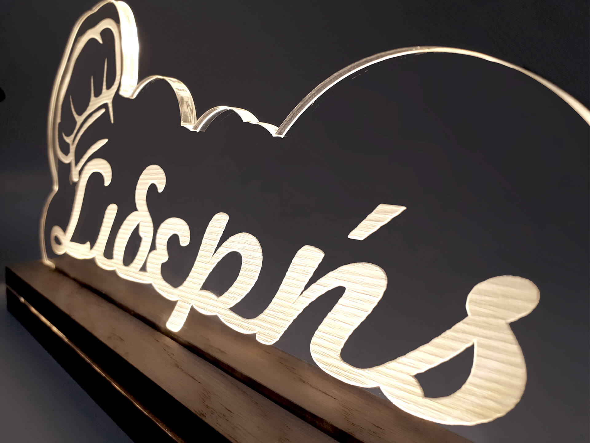 Ακρυλικό διάφανο πάχους 6mm, Ξύλινη custom βάση