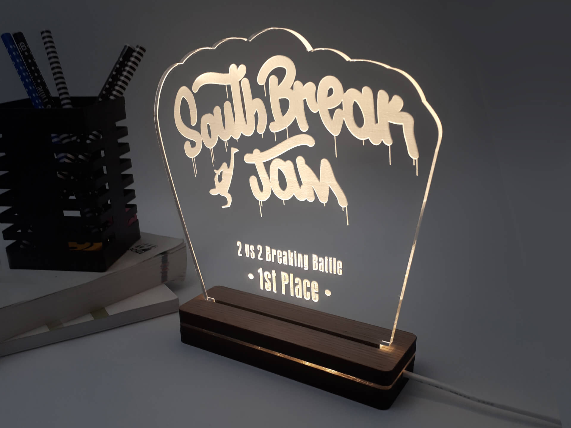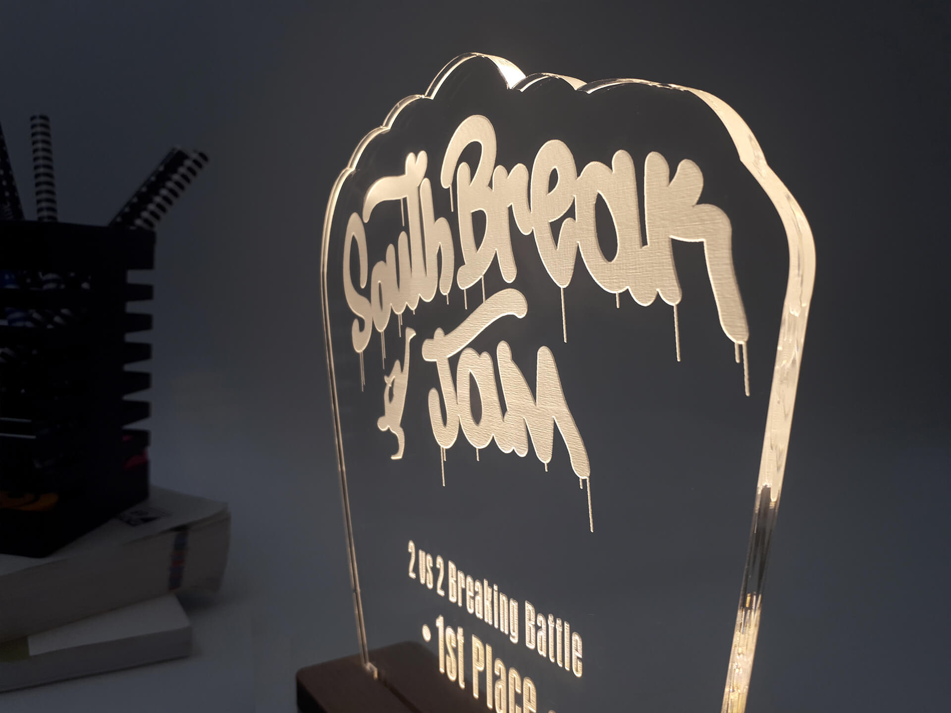 Ακρυλικό διάφανο πάχους 6mm, Ξύλινη custom βάση