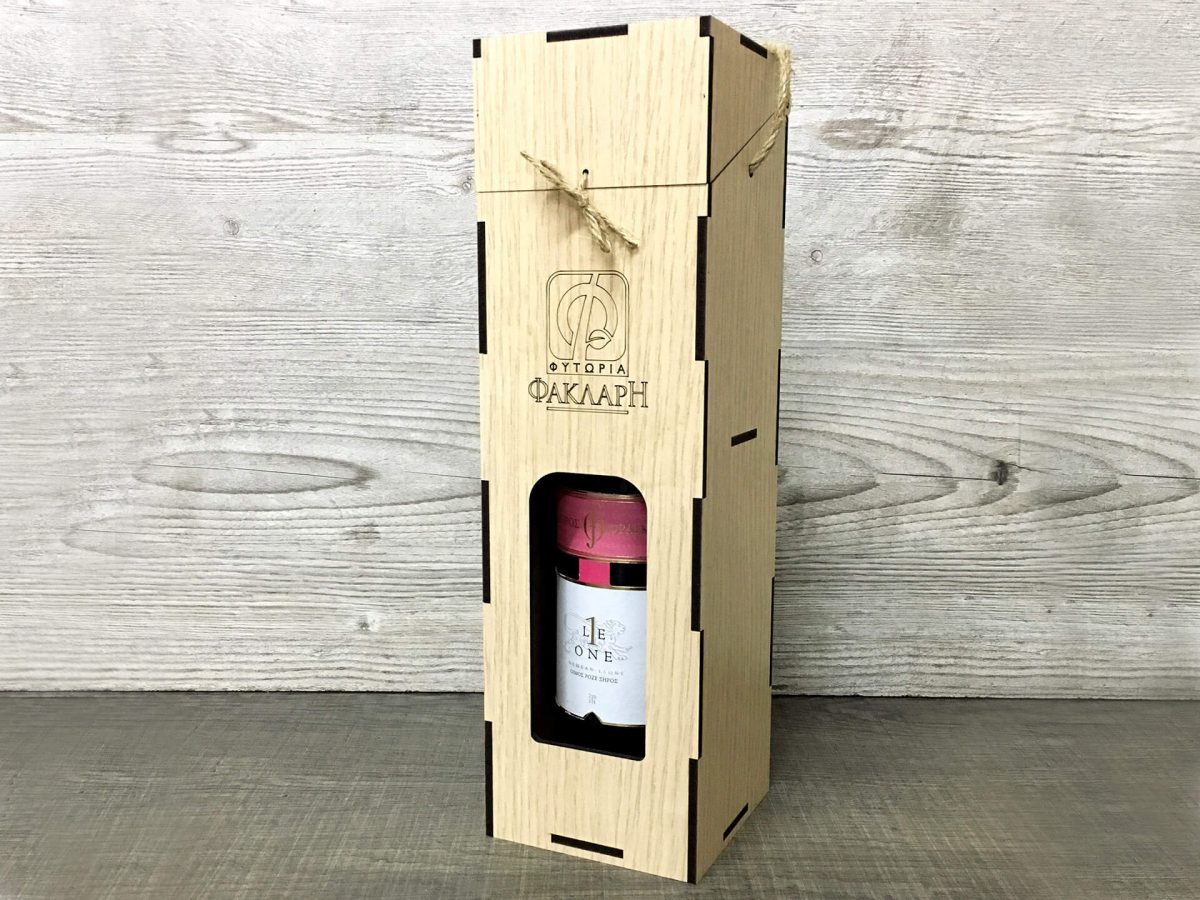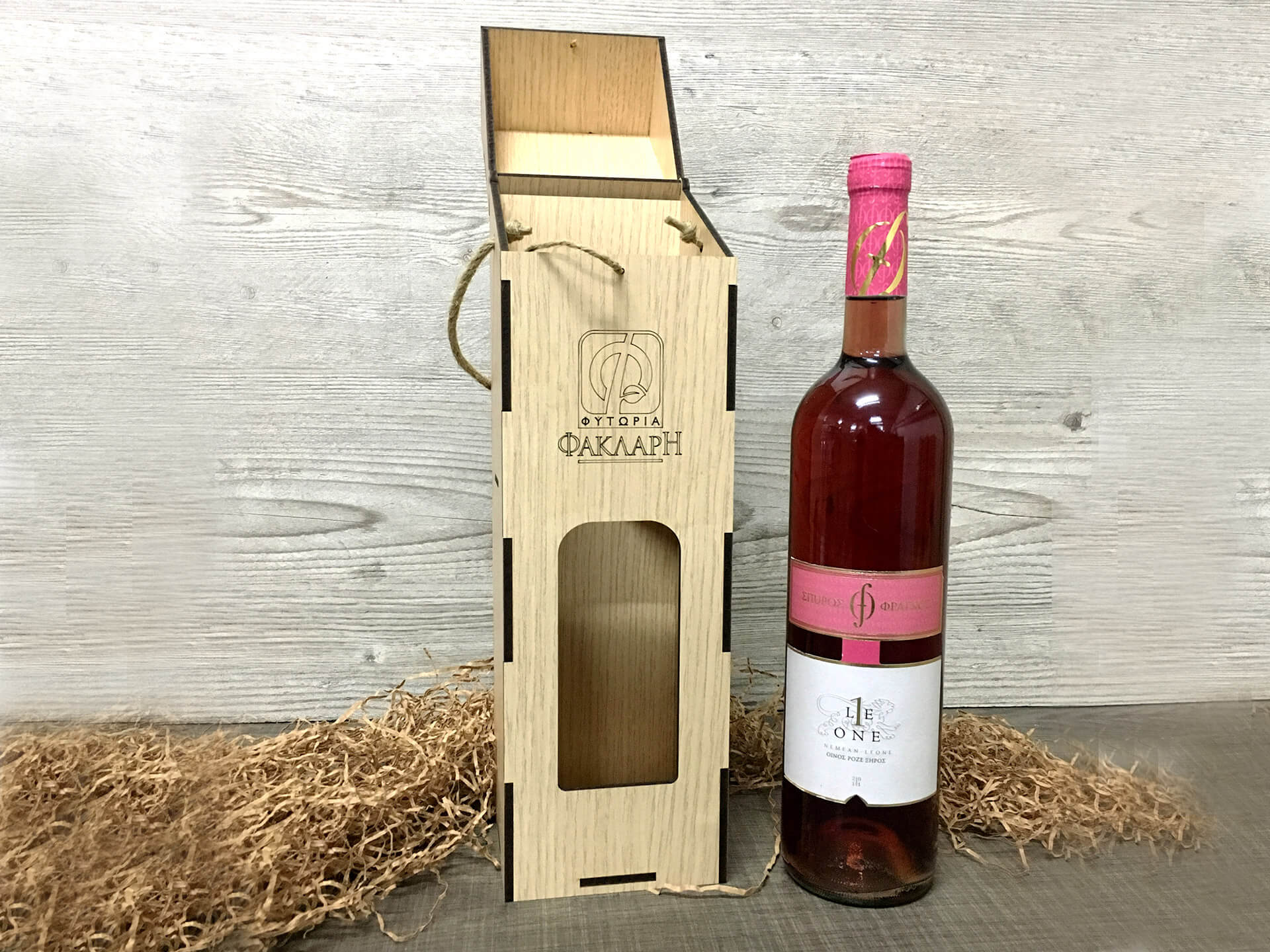 Premium Ξύλινη Συσκευασία κρασίου με ανοιγόμενο καπάκι. Ένα πολυτελές και ιδιαίτερο δώρο για τους πελάτες και συνεργάτες σας! • Υλικά: Ξύλο MDF δρυς λακαριστό