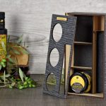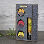 Premium Ξύλινη Συσκευασία δώρου με θήκες για 1 μπουκάλι και 3 βαζάκια • Υλικά: Ξύλο βέγκε