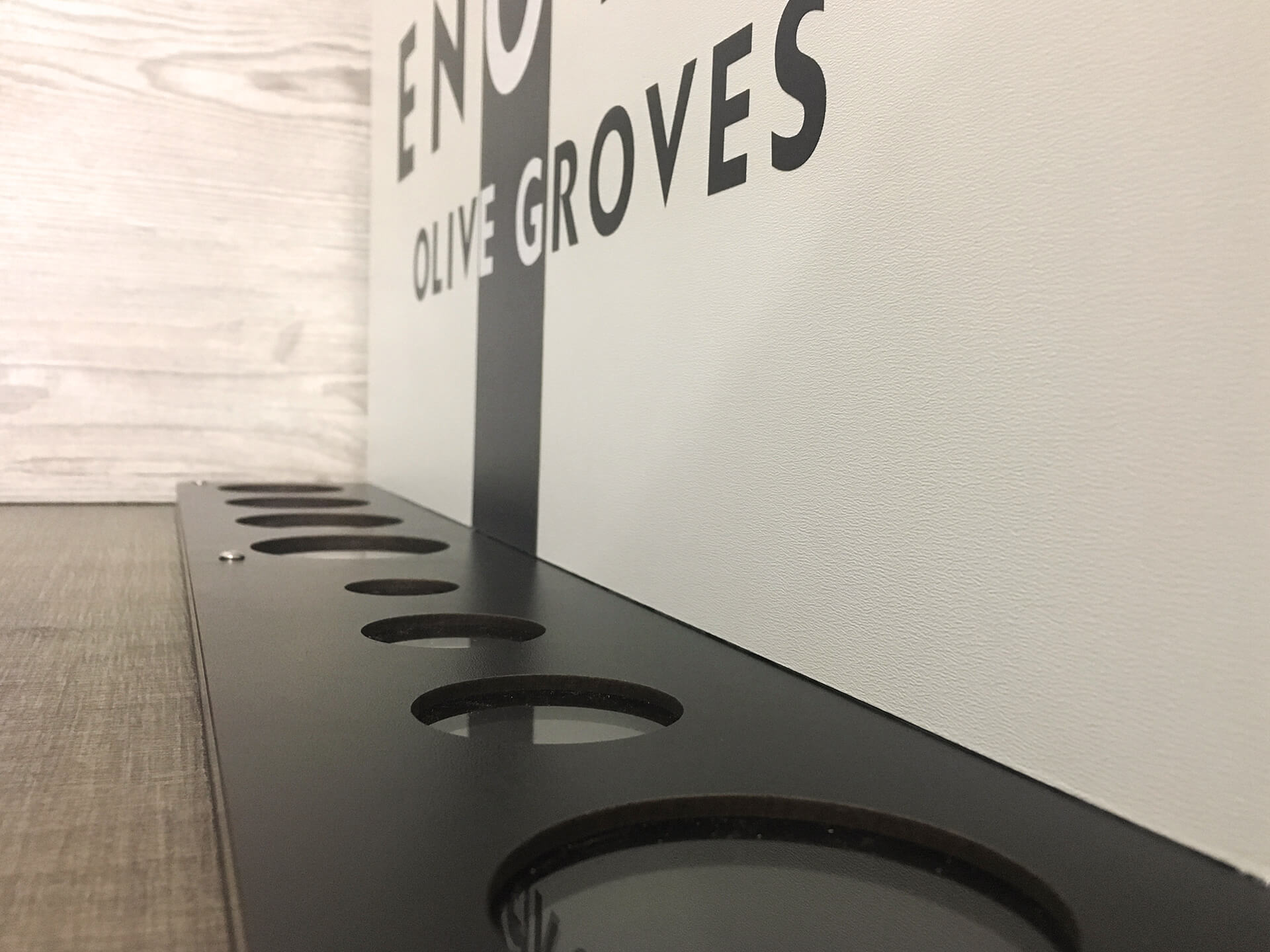 Προϊοντικό Premium σταντ με συνδιασμό υλικών, ξύλο και ακρυλικό για βαζάκια με ελιές και λάδι. Εντυπωσιάστε τους πελάτες σας με μοναδικές δημιουργίες • Υλικά: Ξύλο MDF μαύρο λακαριστό & διάφανο ακρυλικό.