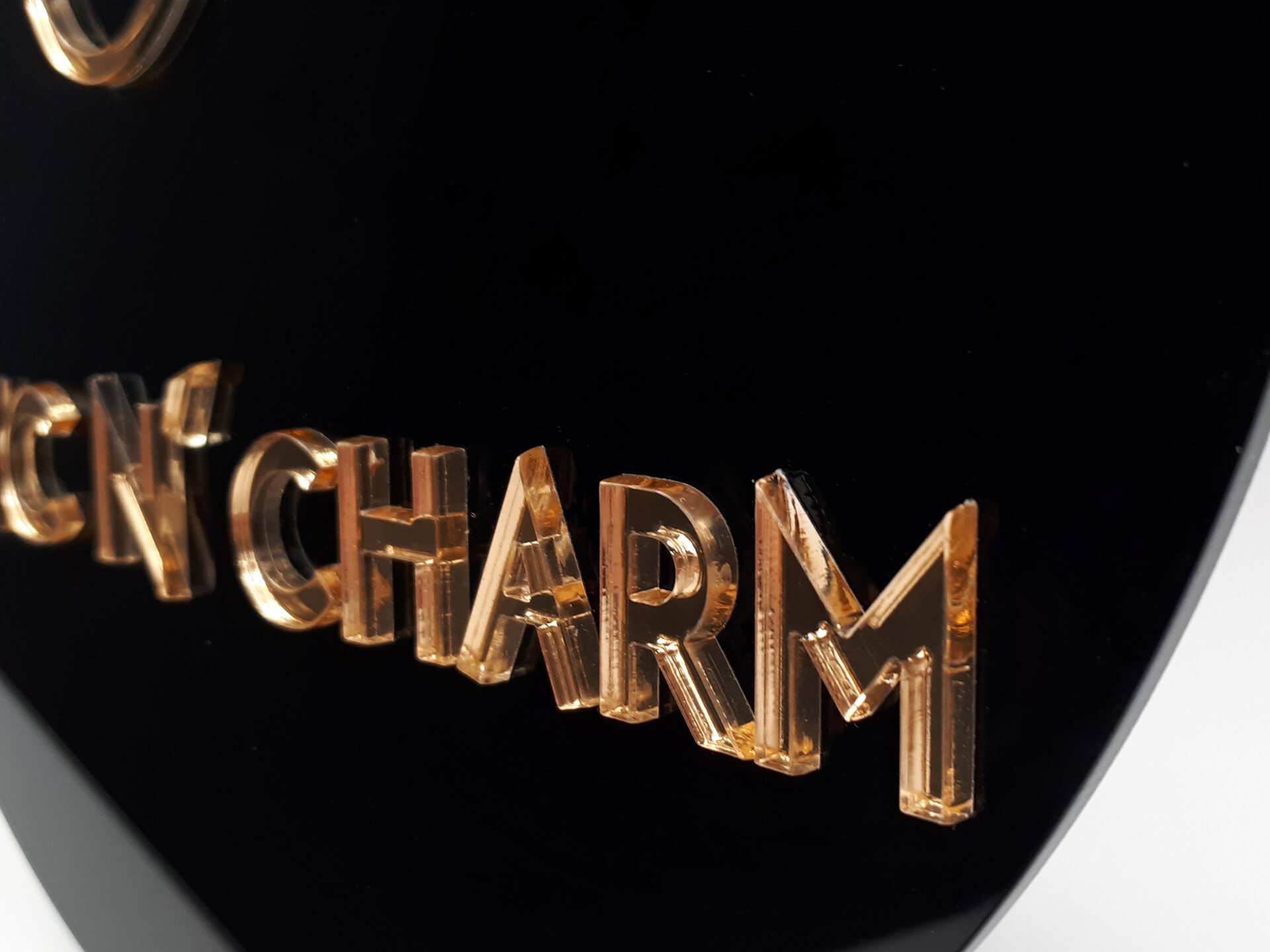• Υλικά: Μαύρο ακρυλικό πάχους 5mm, Ακρυλικός καθρέπτης πάχους 3mm σε χρυσή απόχρωση