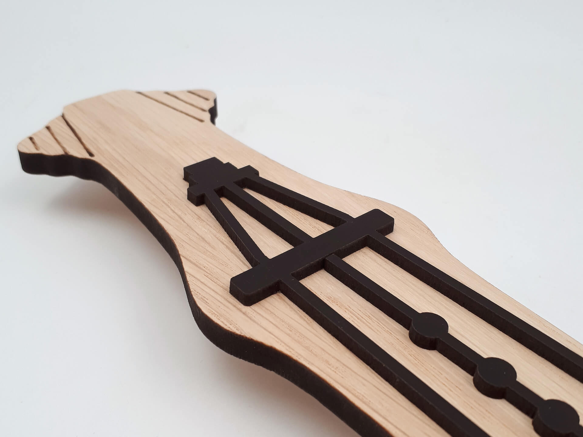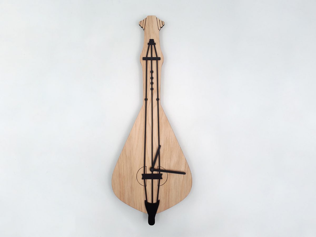 Ξύλινο Ρολόι τοίχου Κρητική λύρα. Τέλεια ιδέα διακόσμησης του χώρου σας ή ένα ιδιαίτερο δώρο. • Υλικά: Ξύλο Mdf Δρυς πάχους 7mm με χάραξη, Mαύρο Mdf λακαριστό πάχους 3mm