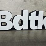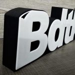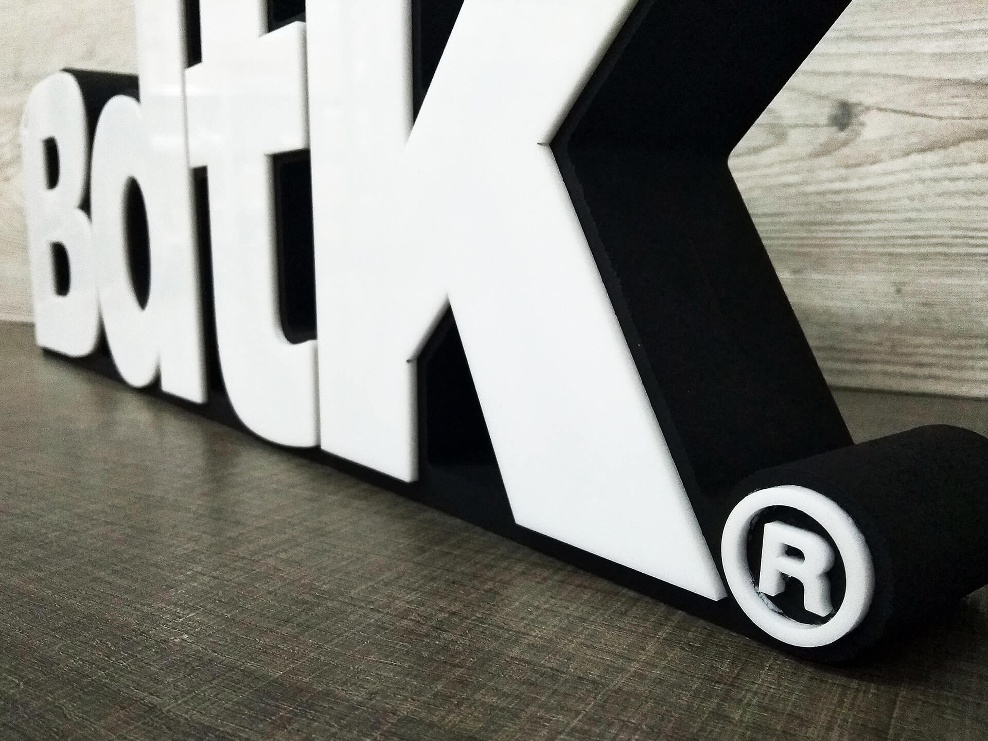 Κατασκευή λογοτύπου από φελιζόλ και ακρυλικό για εταιρεία αθλητικών ειδών Υλικά: Μαύρο φελιζόλ πάχους 5cm και άσπρο ακρυλικό πάχους 3mm