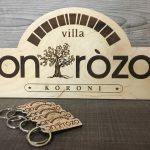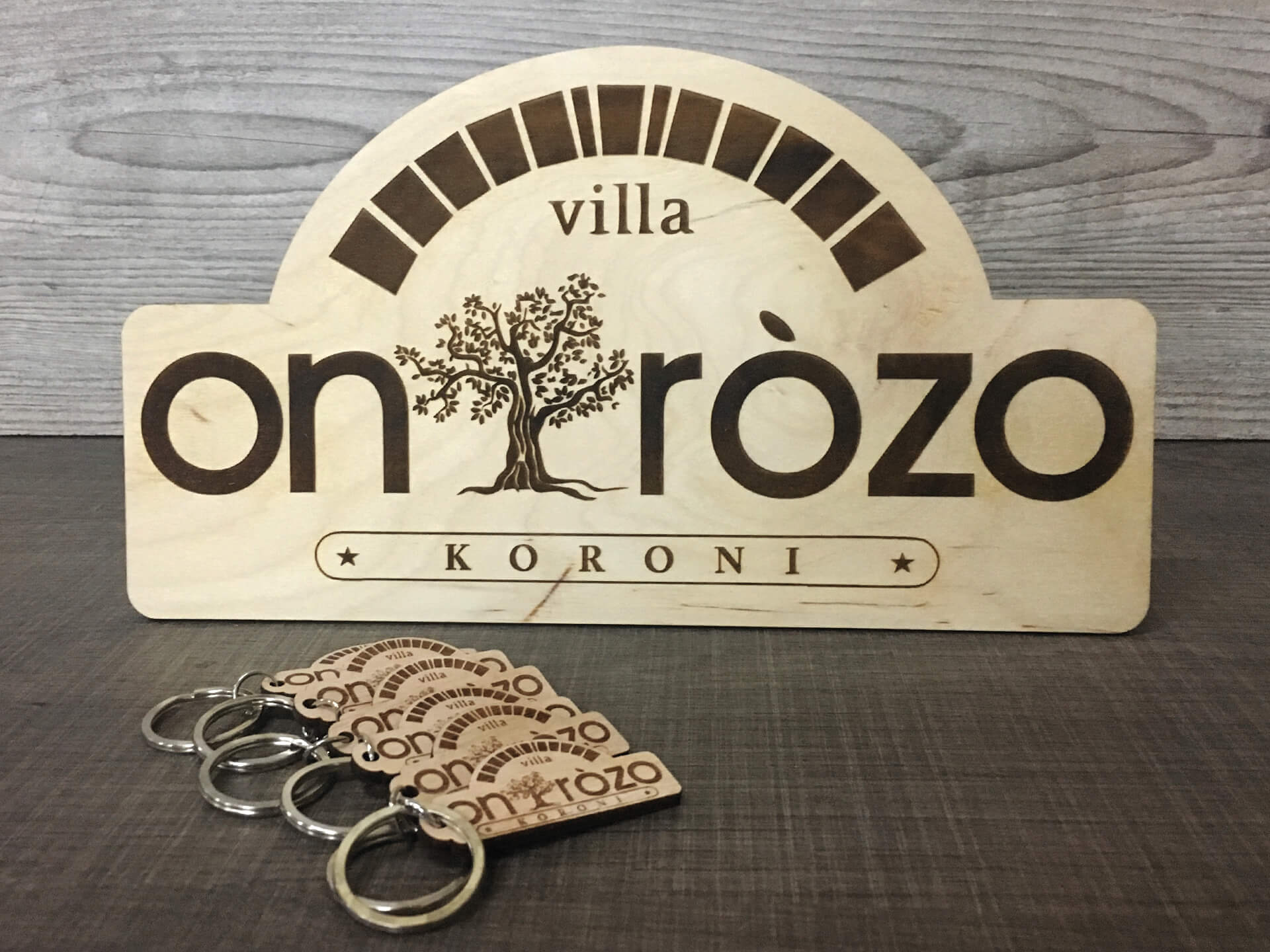 Ξύλινη ταμπέλα με χάραξη το λογότυπο. • Υλικά: Ξύλο κόντρα πλακέ θαλάσσης πάχους 6mm