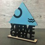 Ξύλινη Επιτραπέζια ταμπέλα μιας όψης • Υλικά: Ξύλο MDF ανιγκρέ πάχους 7mm και MDF μαύρο λακαριστό πάχους 3mm MDF βαμμένο πάχους 3mm