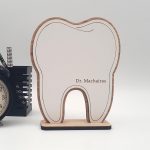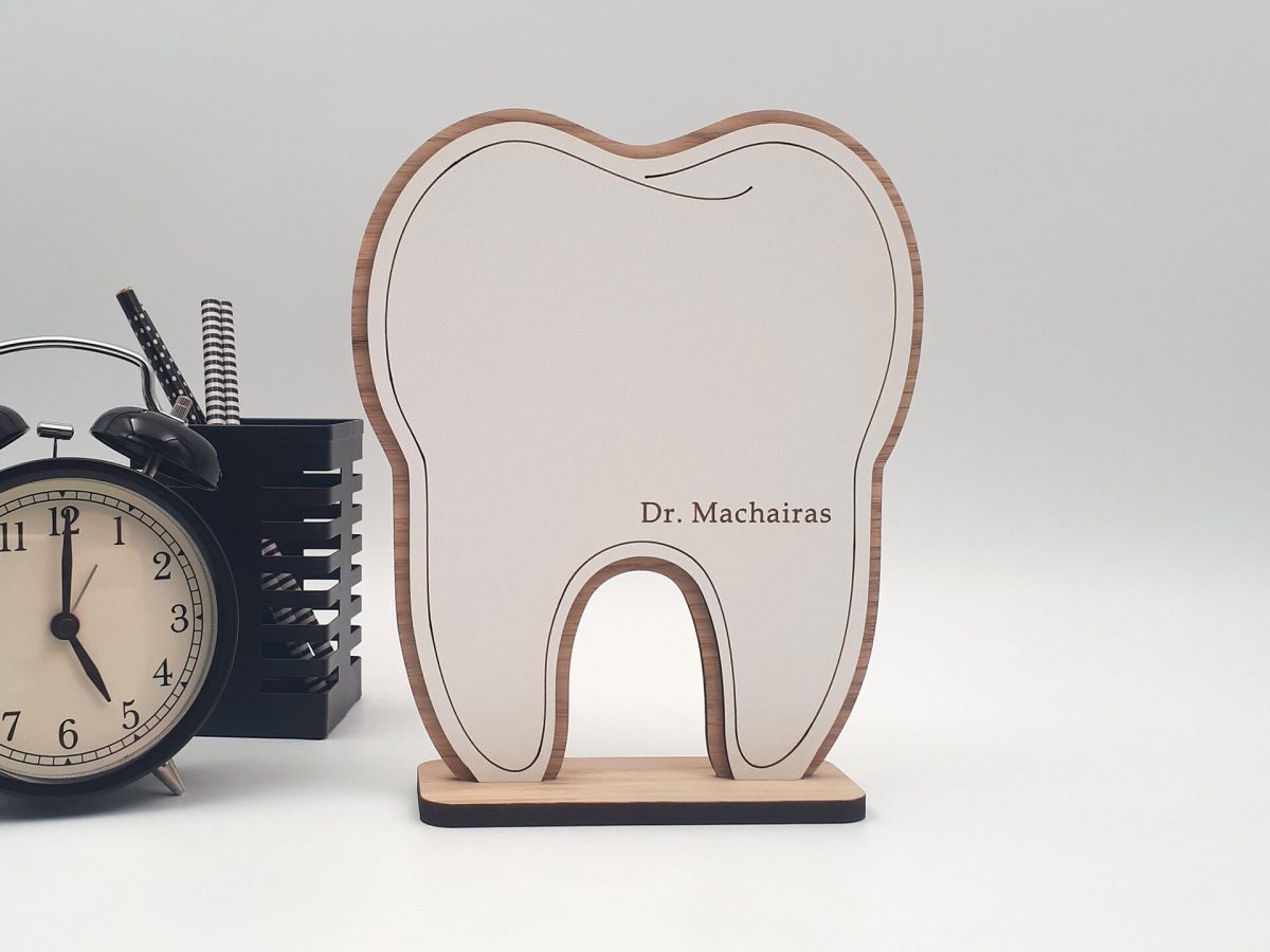 Ξύλινο επιτραπέζιο διακοσμητικό με λογότυπο για οδοντιατρείο.