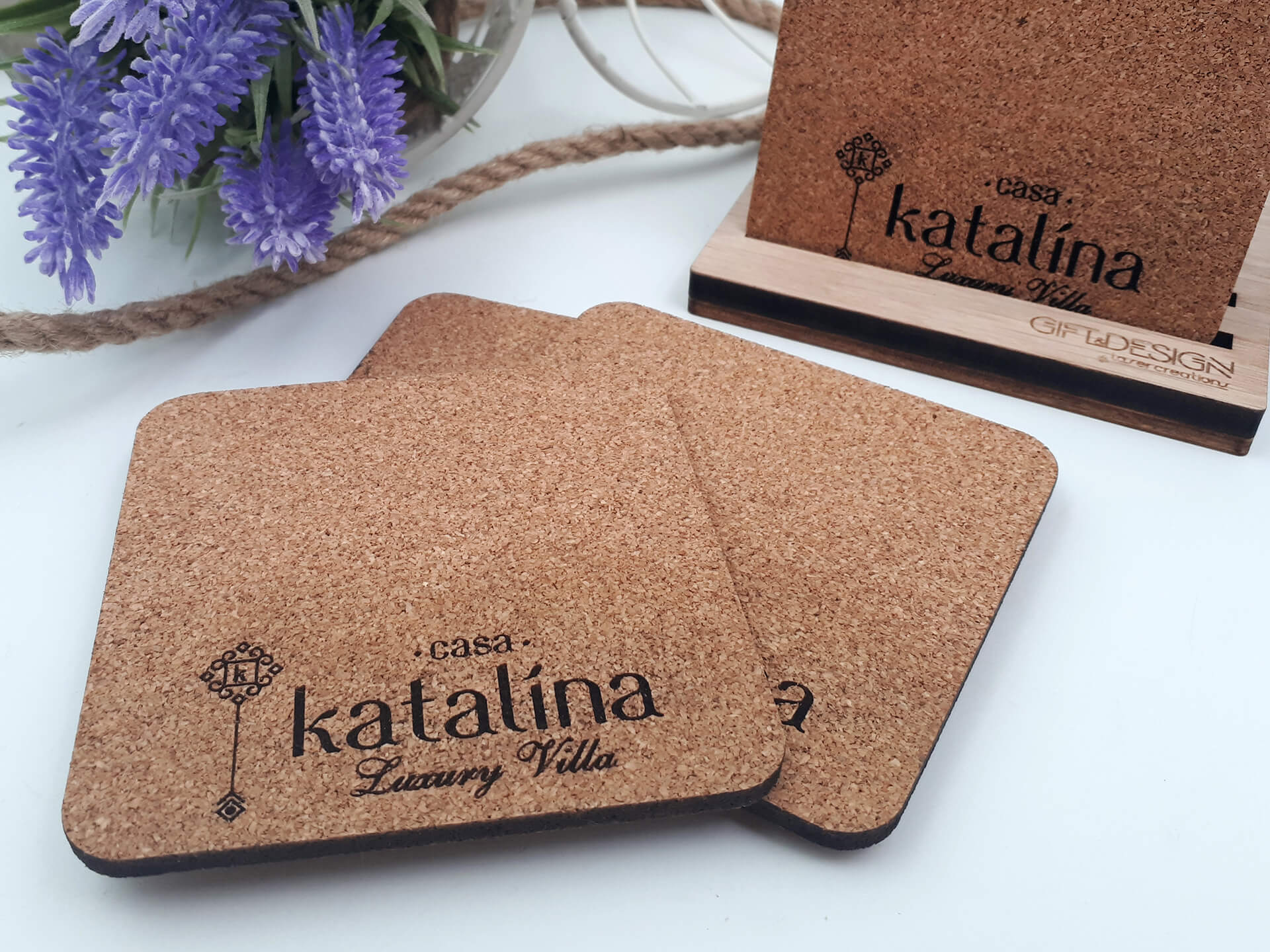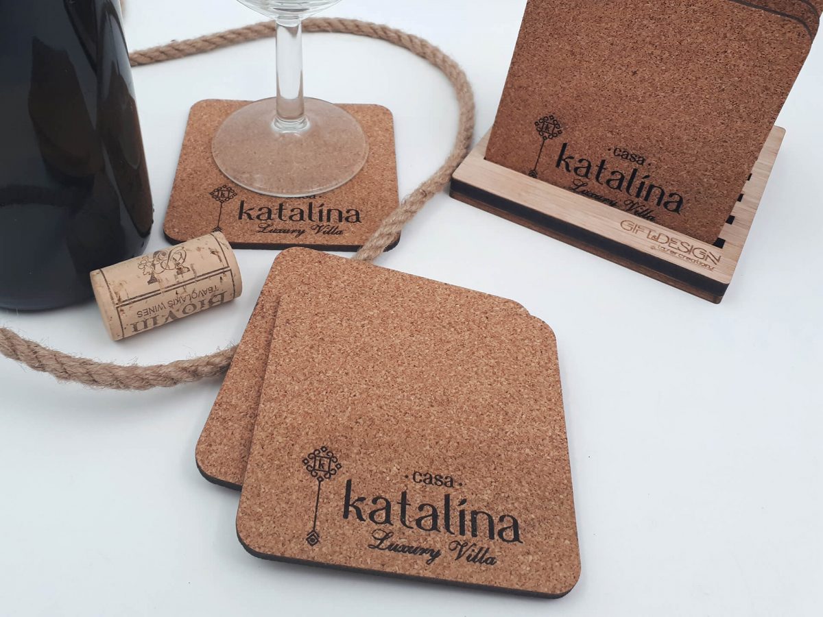 Σουβέρ από φελλό με χάραξη το λογότυπο της επιχείρησης. • Υλικά: Φελλός πάχους 4mm