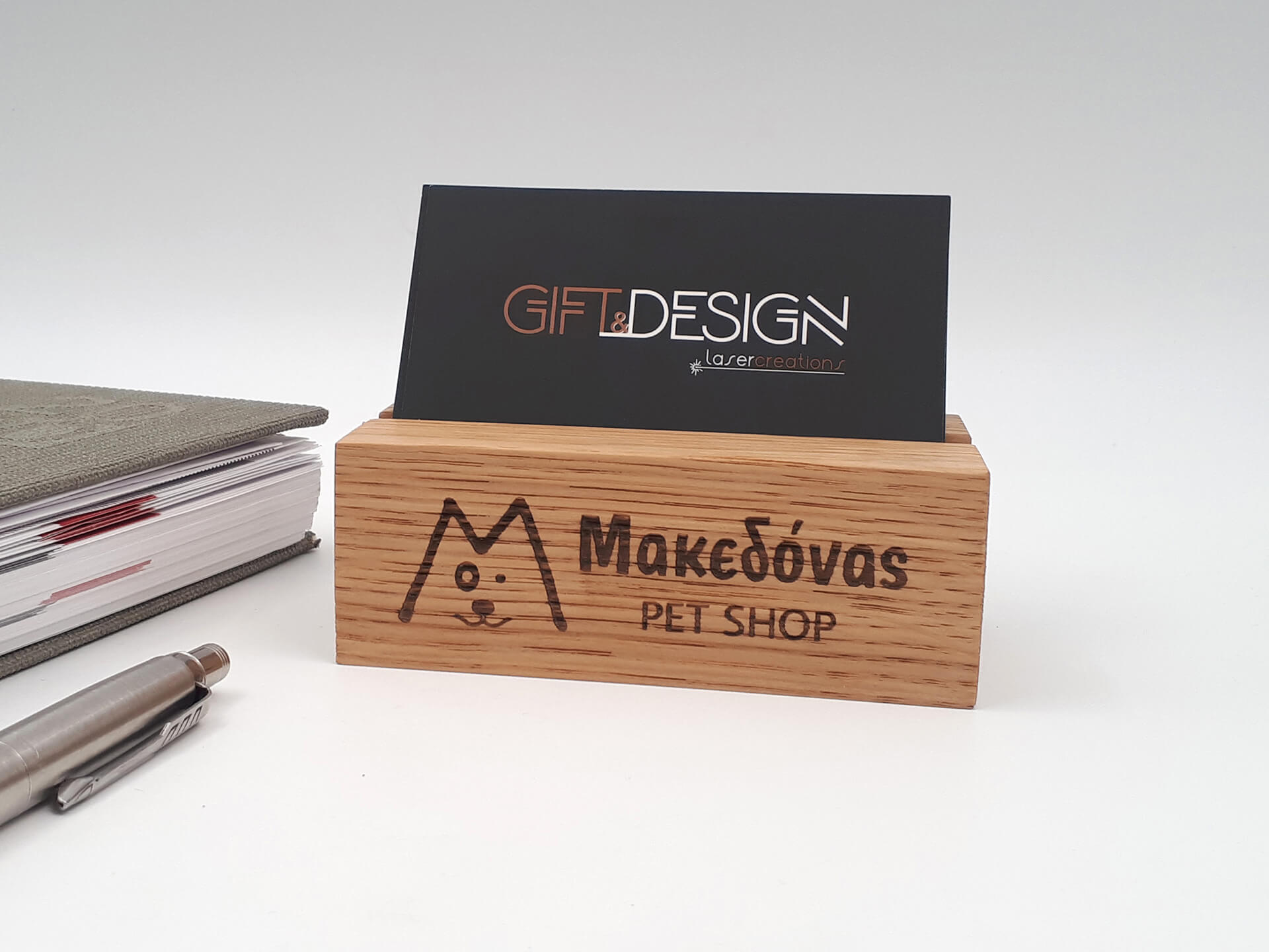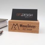 Θήκη για επαγγελματικές κάρτες από μασίφ ξύλο δρυς με χάραξη το λογότυπο της επιχείρησης σας. Ιδανική επιλογή για να αναδείξετε έξυπνα την επαγγελματική σας κάρτα. • Υλικά: Μασιφ ξύλο Δρυς