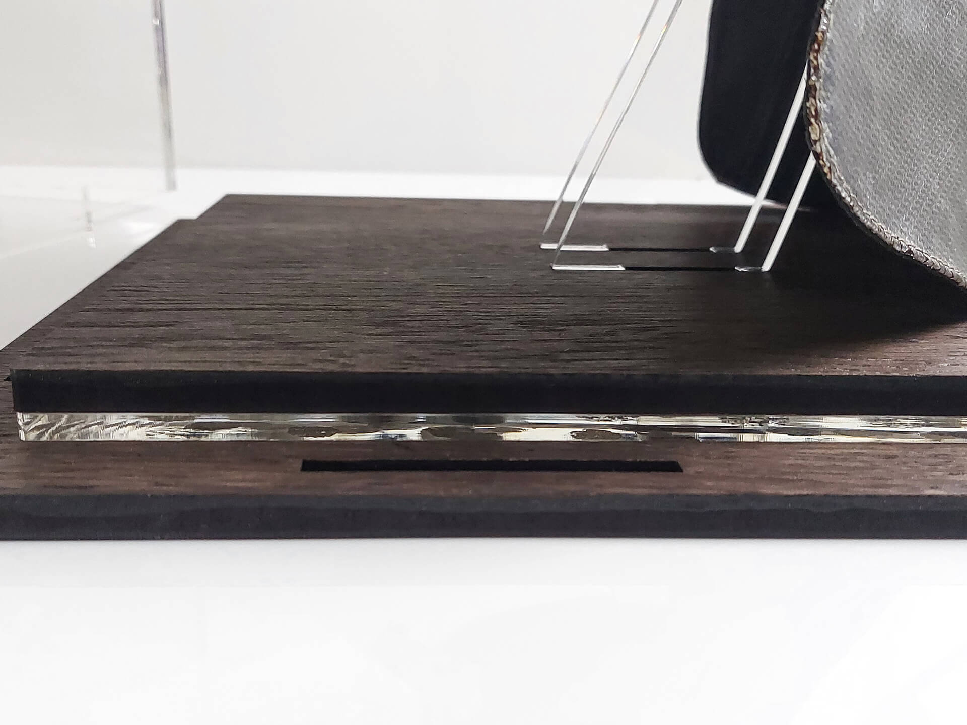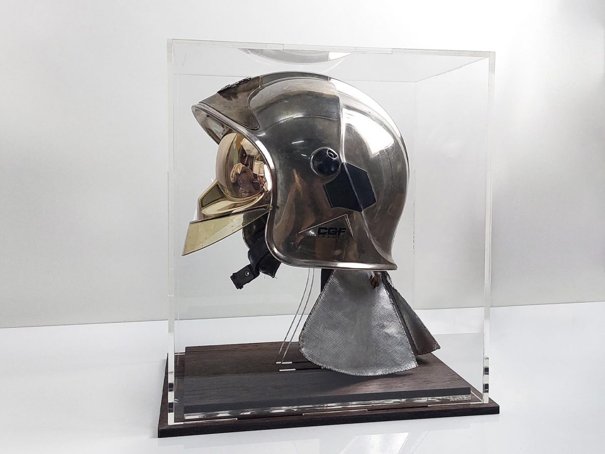 Κατασκευή custom βιτρίνας με συνδυασμό υλικών για την προστασία συλλεκτικού αντικειμένου.