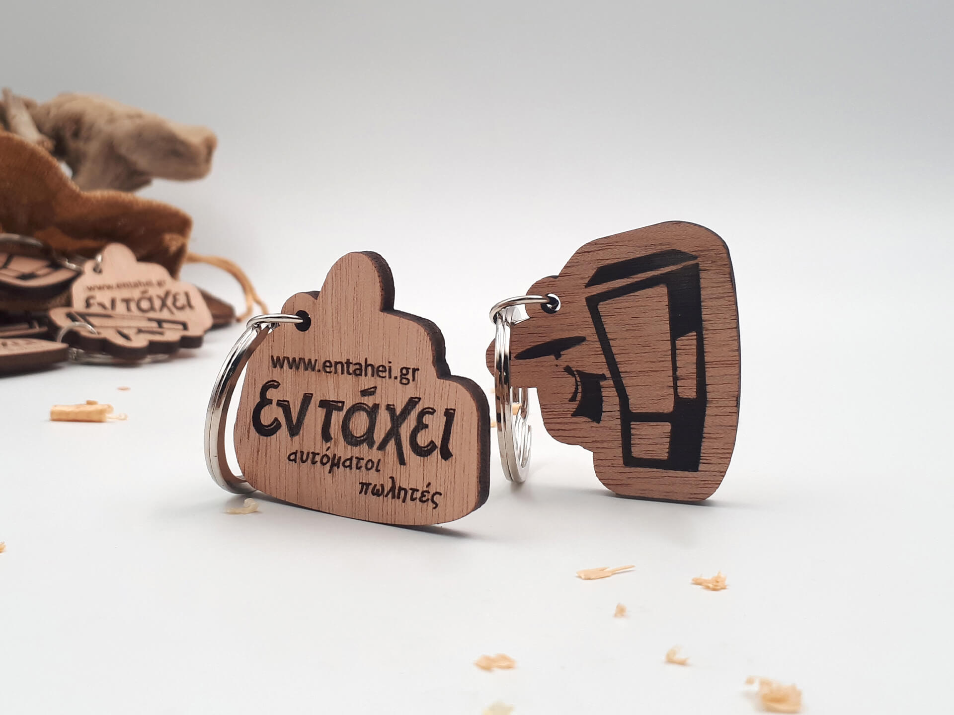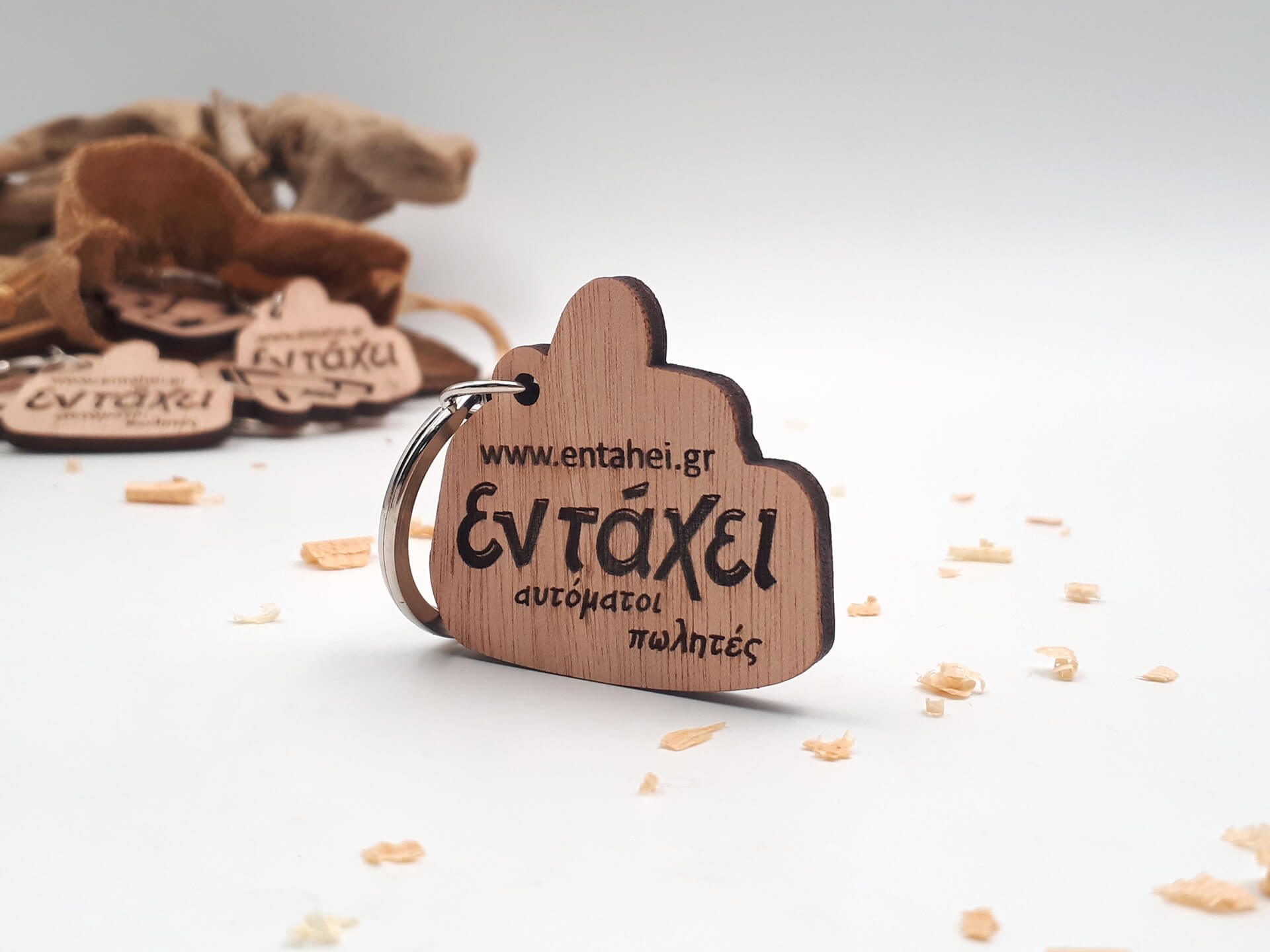 Πρωτότυπο ξύλινο μπρελόκ για επιχειρηματικό δώρο, βασισμένο στο δικό σας λογότυπο.