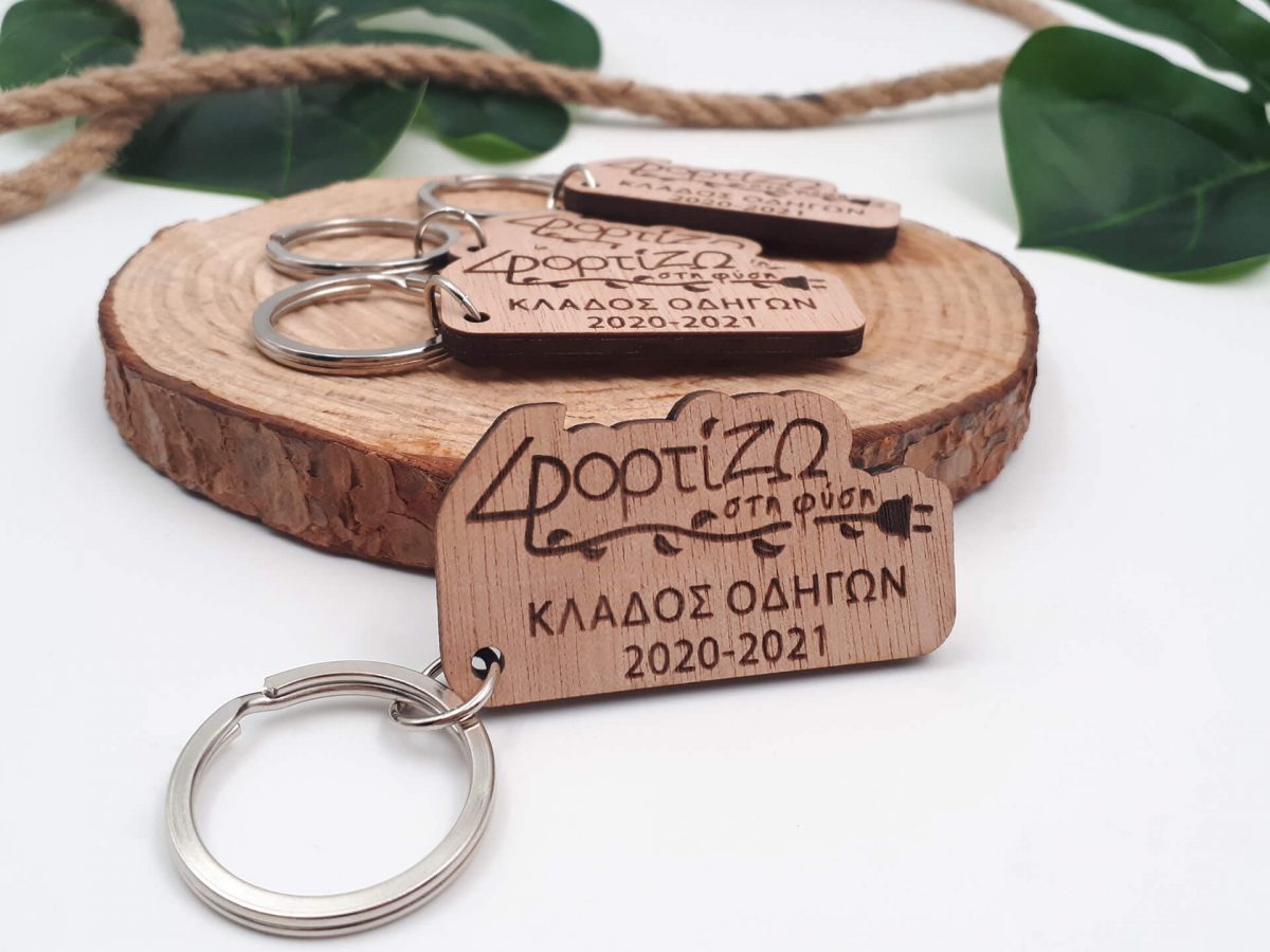 Πρωτότυπο ξύλινο μπρελόκ για επιχειρηματικό δώρο, βασισμένο στο δικό σας λογότυπο.