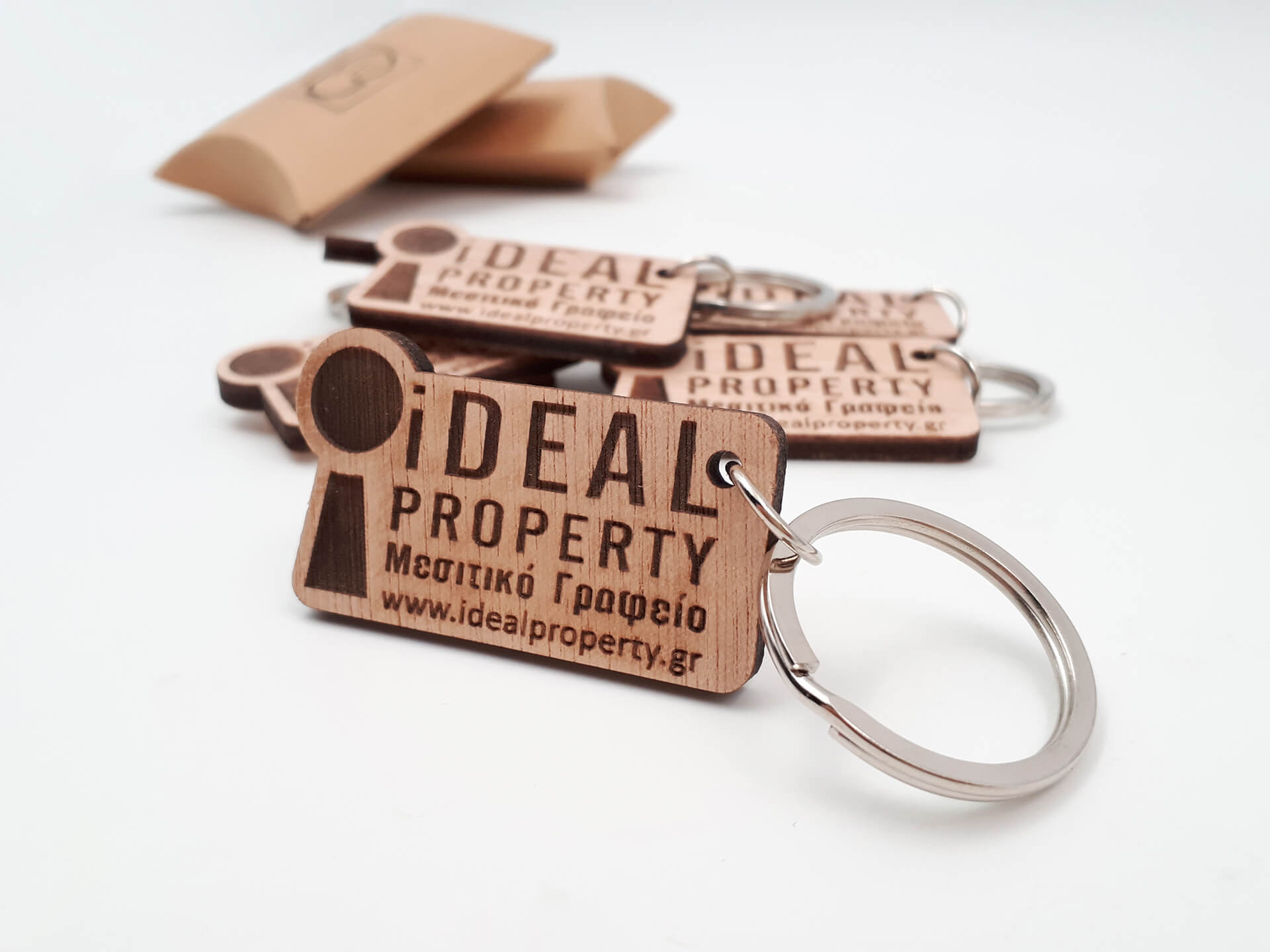 Πρωτότυπο ξύλινο μπρελόκ για επιχειρηματικό δώρο, βασισμένο στο δικό σας λογότυπο.