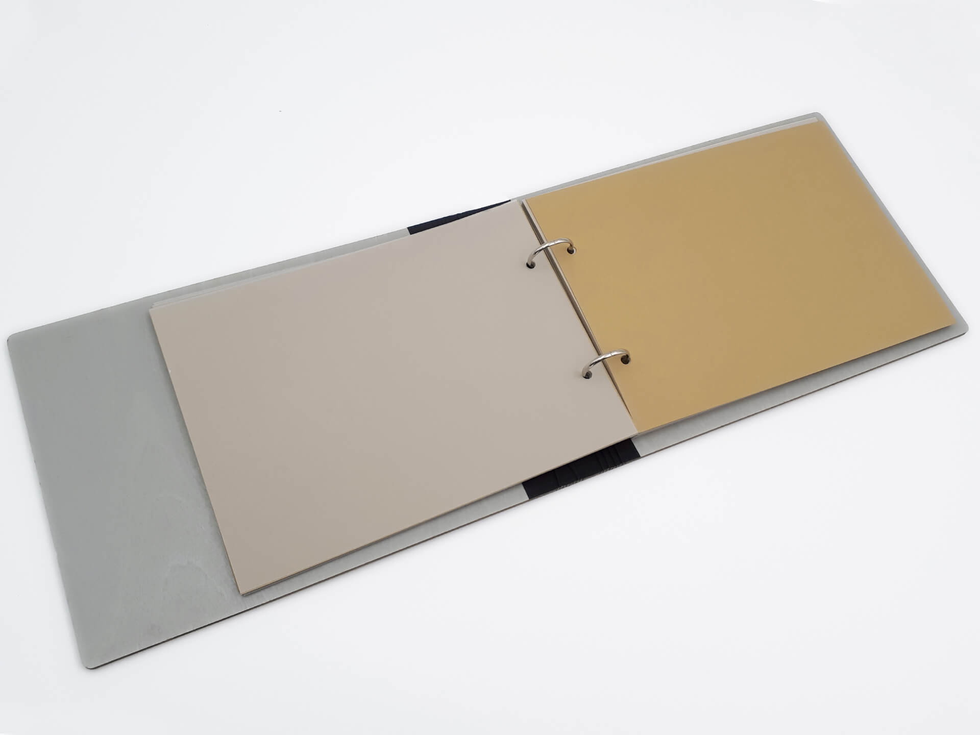 • Υλικά: Εξωτερική κατασκευή από ξύλο κόντρα πλακέ θαλάσσης σημύδα 4mm βαμμένο και με επικάλυψη βερνικιού. Εσωτερικά, μεταλλικοί κρίκοι για τη συγκράτηση των σελίδων, φύλλα από χοντρό χαρτόνι για την τοποθέτηση των φωτογραφιών, ριζόχαρτο ανάμεσα στα φύλλα για την προστασία των φωτογραφιών και υφασμάτινη ταινία στο σημείο που ανοιγοκλείνει το άλμπουμ για συγκράτηση και μεγαλύτερη ανθεκτικότητα του ξύλου κατά τη χρήση. Δίνονται χάρτινες αυτοκόλλητες γωνίες για την τοποθέτηση των φωτογραφιών.