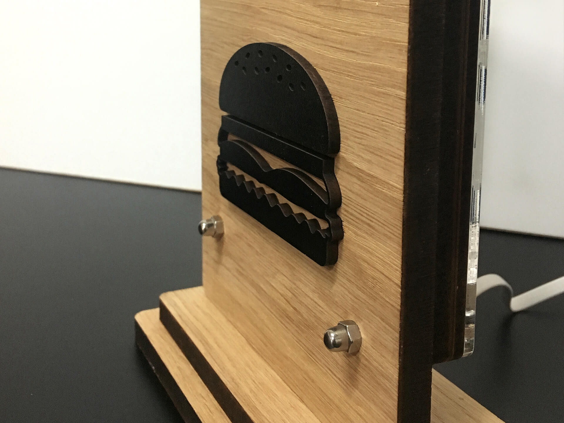 • Υλικά: MDF Δρυς πάχους 9mm, MDF λακαριστό μαύρο πάχους 3mm, ακρυλικό διάφανο πάχους 3mm