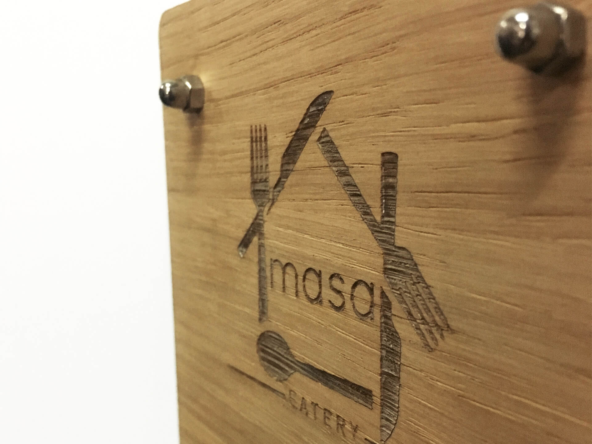 ξύλου δρυς, MDF λακαριστού μαύρου με συνδυασμό διάφανου ακρυλικού στην πίσω όψη στο οποίο γίνεται η χάραξη.