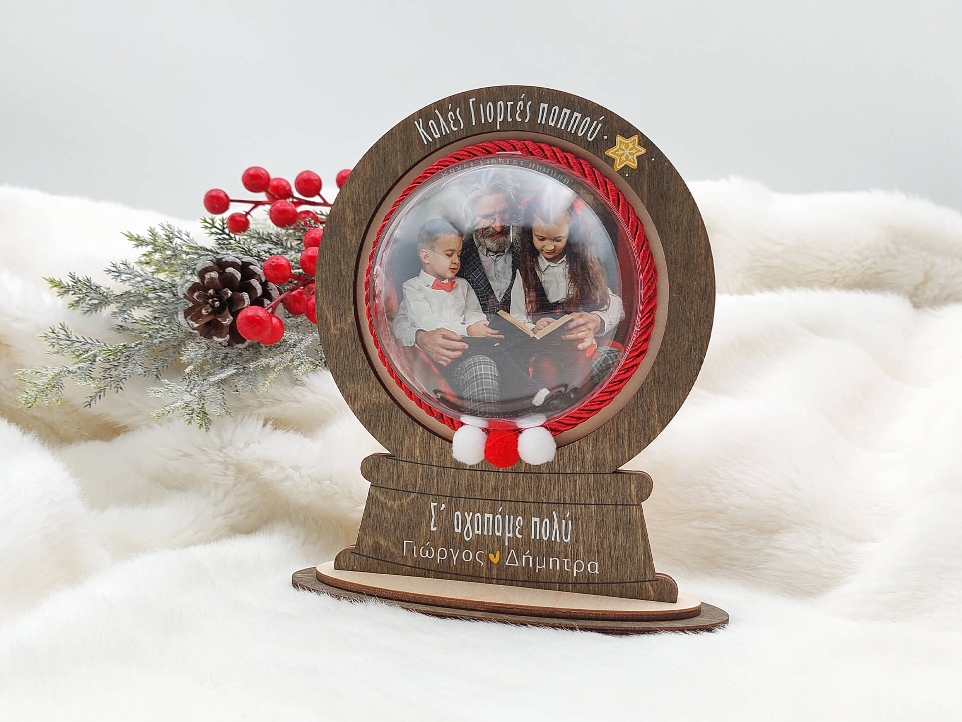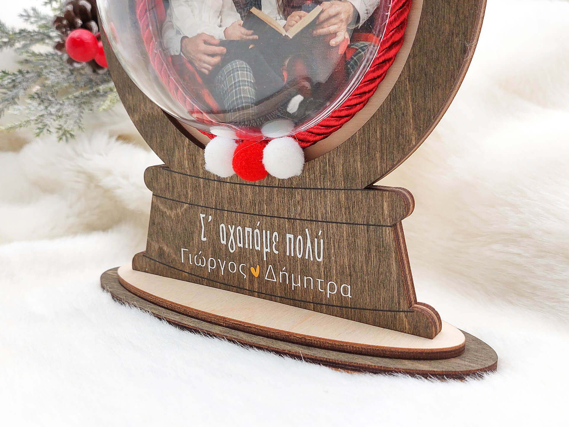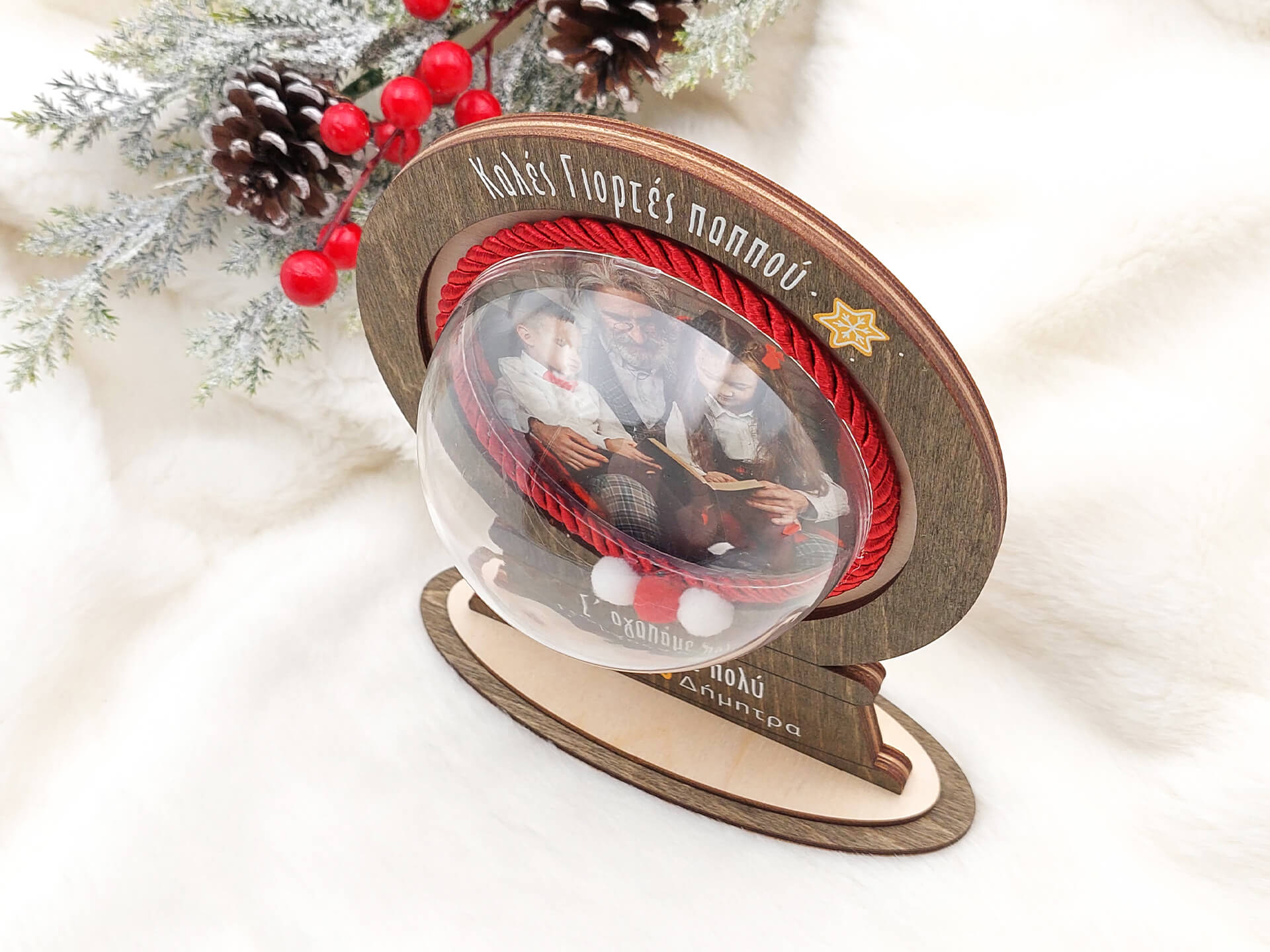 Χριστουγεννιάτικο διακοσμητικό με διάφανη μπάλα “Καλές Γιορτές”