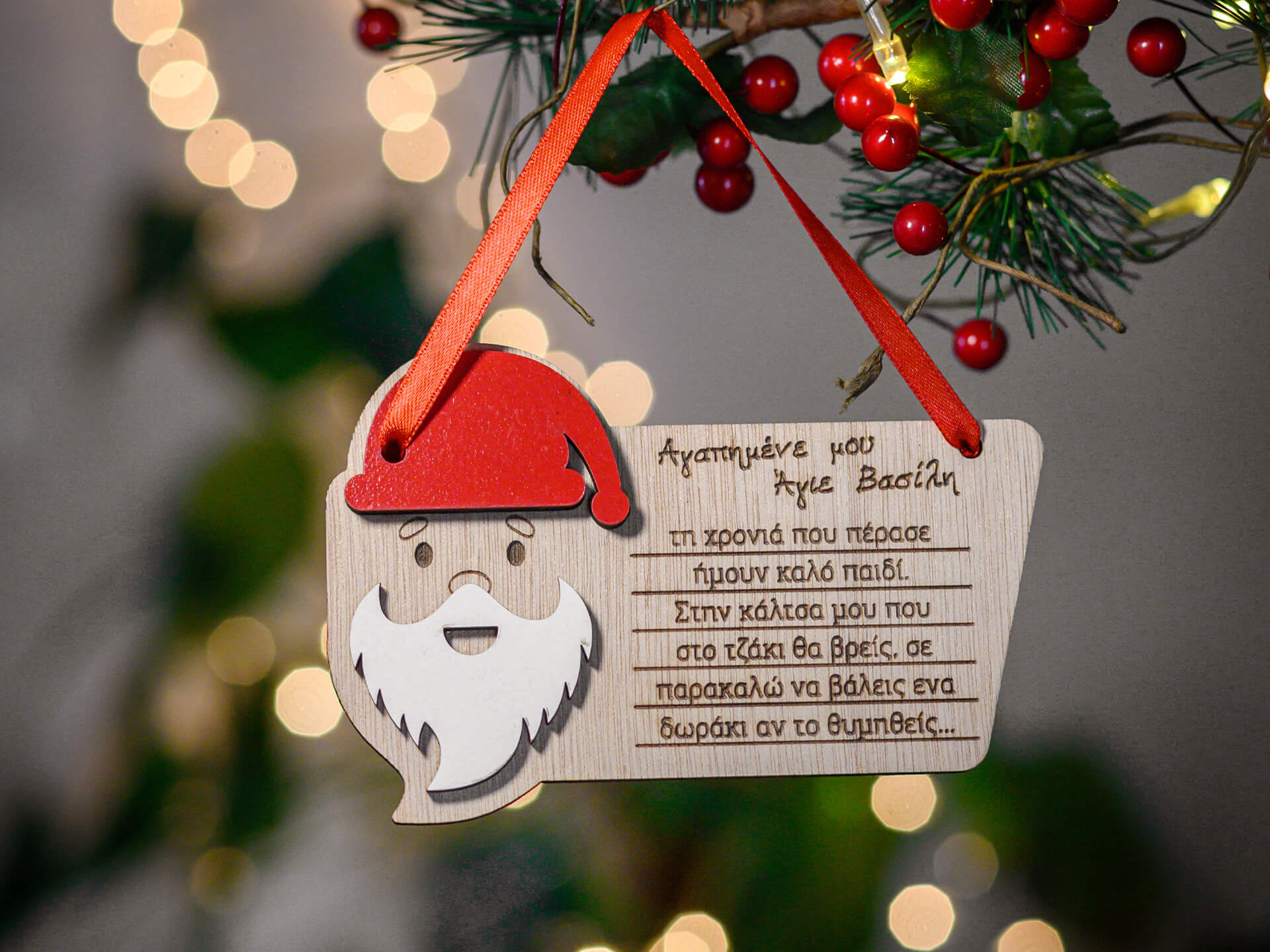 Χριστουγεννιάτικο ξύλινο στολίδι “Γράμμα στον Άγιο Βασίλη”