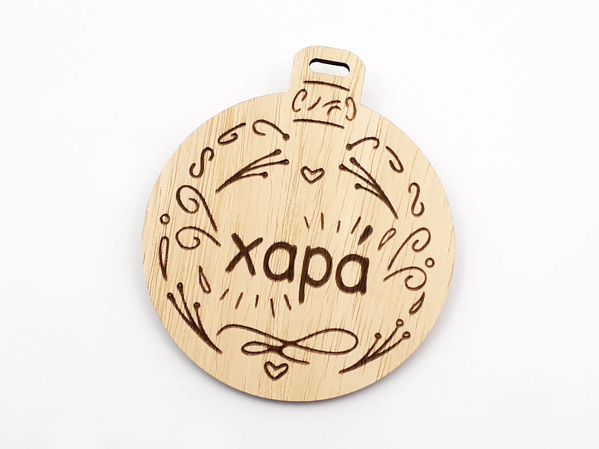 Χριστουγεννιάτικο ξύλινο στολίδι “Μπάλα με ευχή χαρά”