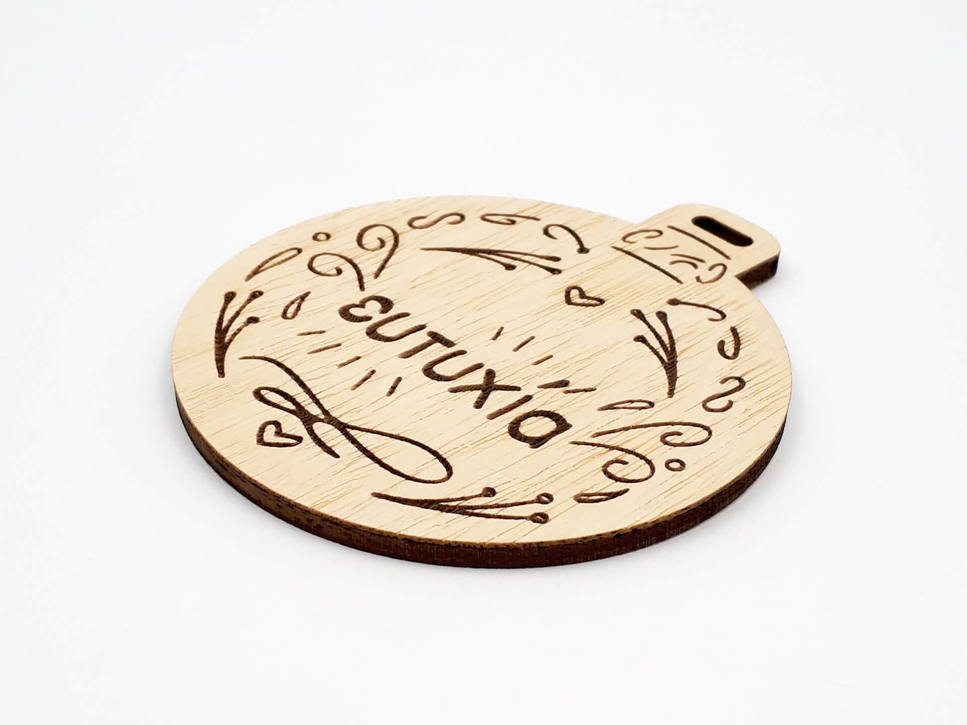 Χριστουγεννιάτικο ξύλινο στολίδι “Μπάλα με ευχή ευτυχία”