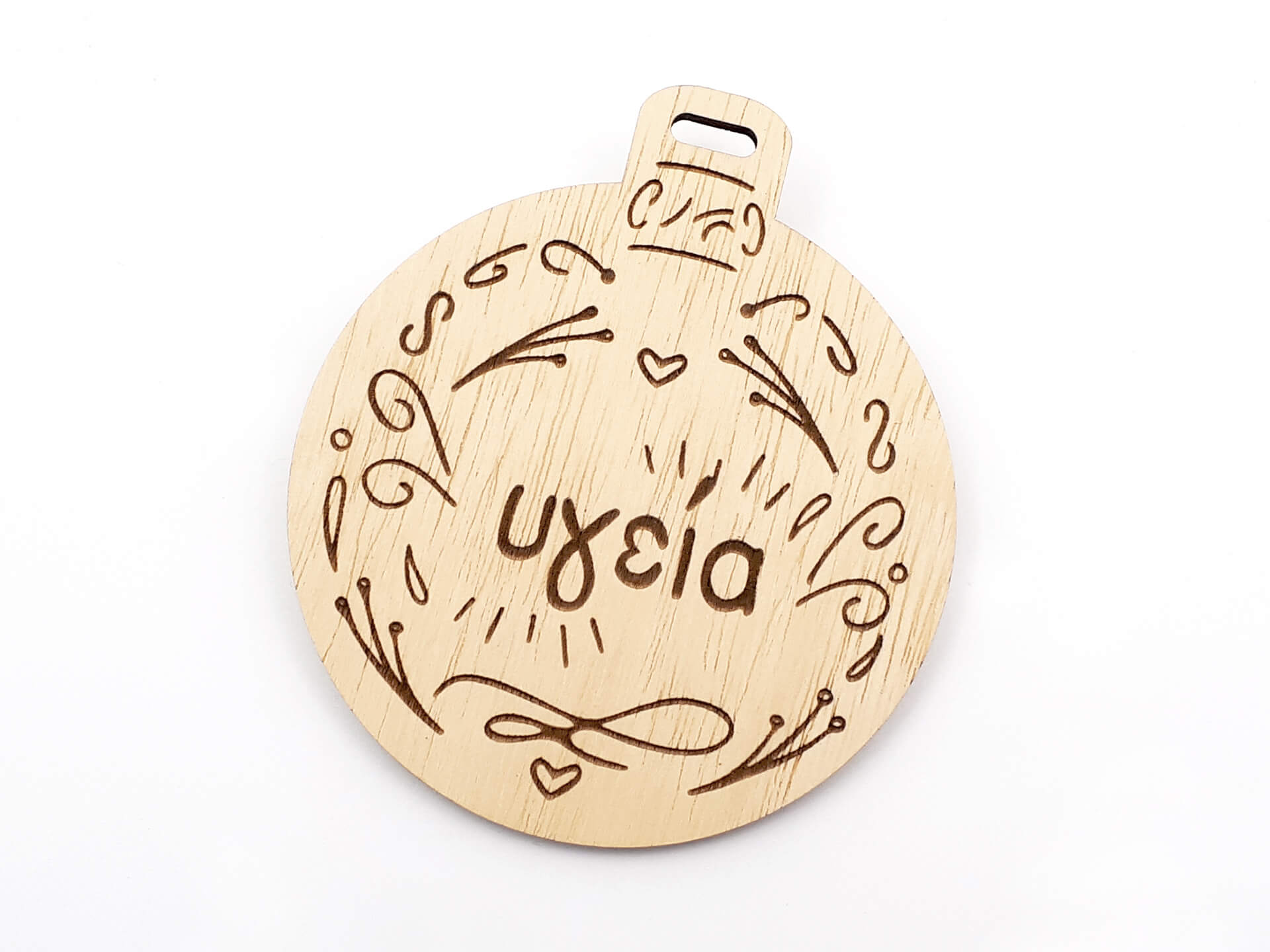 Χριστουγεννιάτικο ξύλινο στολίδι “Μπάλα με ευχή υγεία”