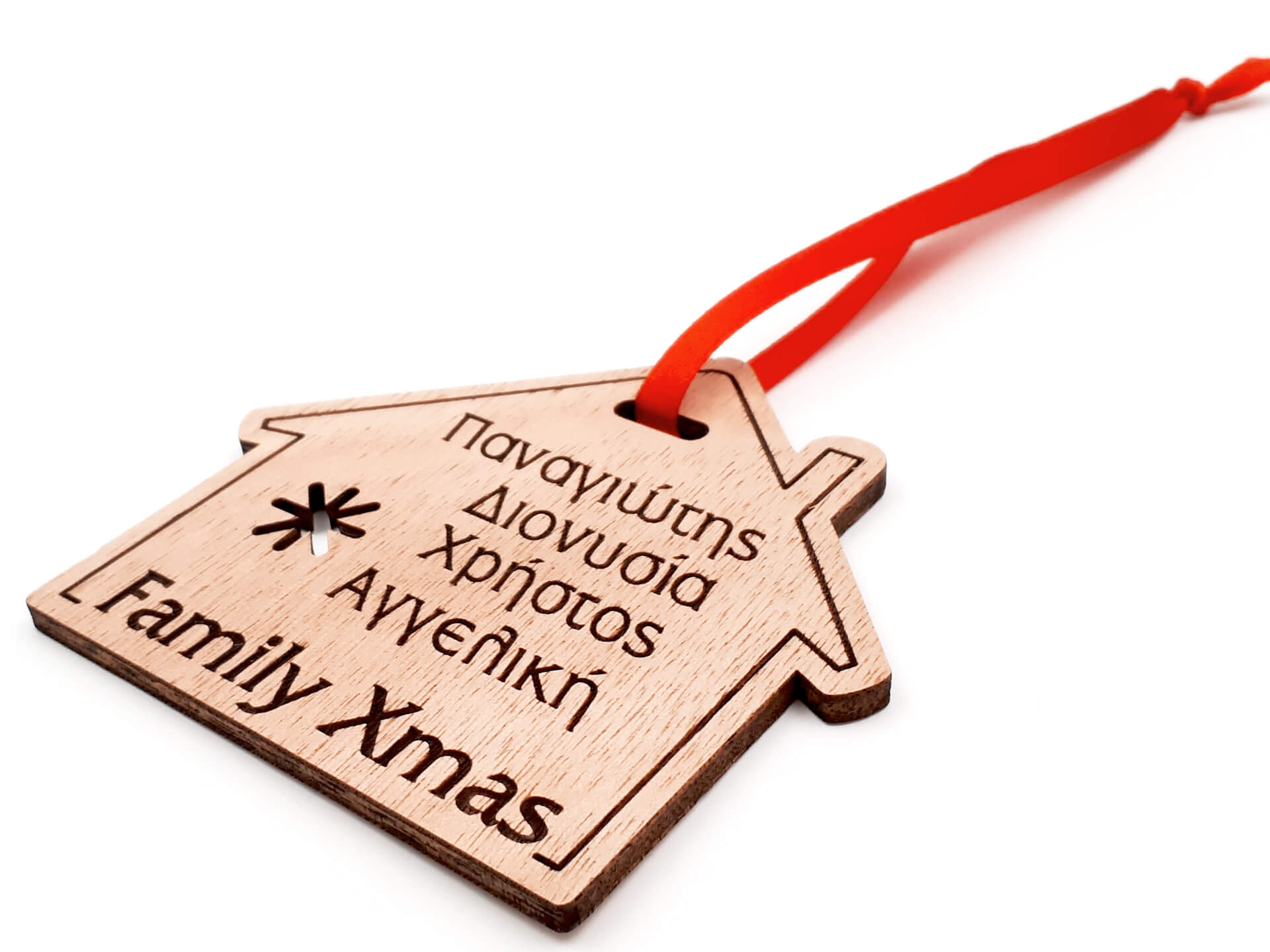 • Υλικά: Ξύλο κόντρα πλακέ οκουμέ πάχους 4mm, δεμένο με κόκκινη κορδέλα 7mm