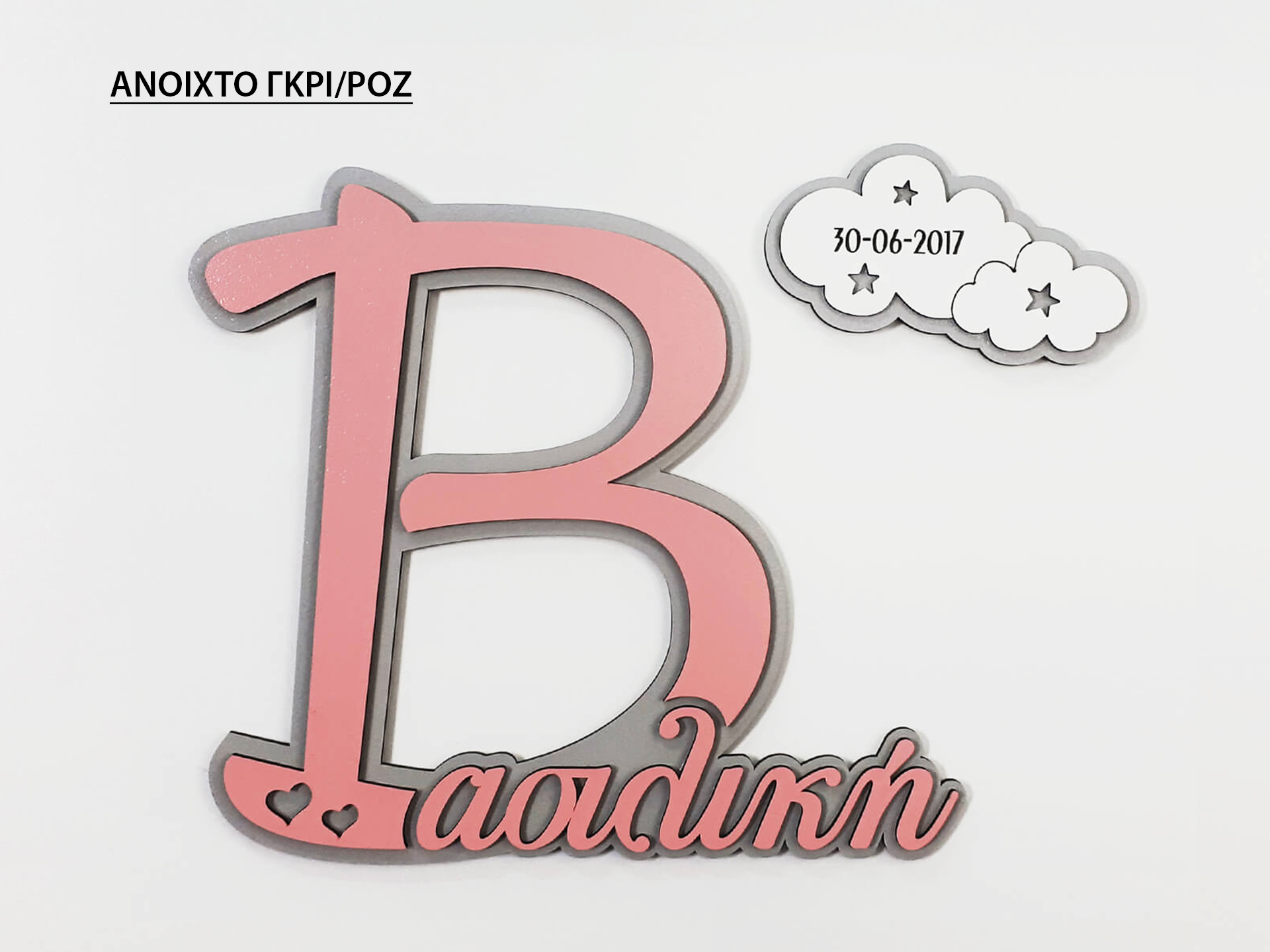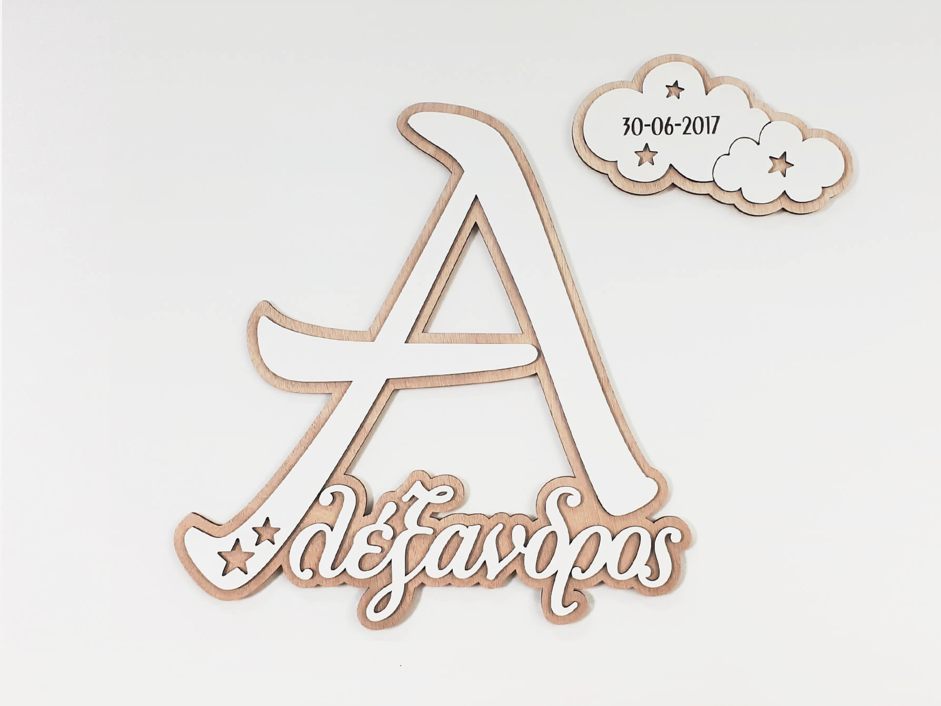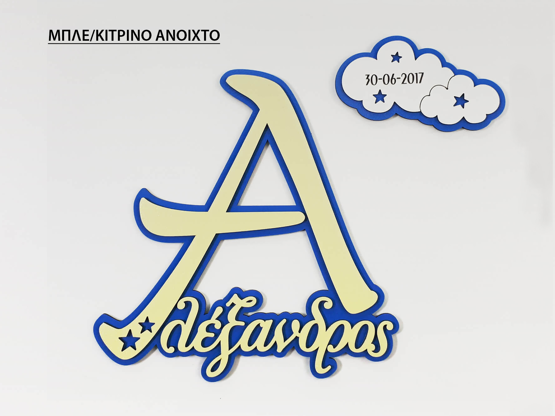 Μοναδικές προτάσεις για τη διακόσμηση του παιδικού δωματίου. Διακοσμητική σύνθεση από ξύλο, με το μονόγραμμα και το όνομα του μωρού σας, σε διάφορους συνδυασμούς χρωμάτων.