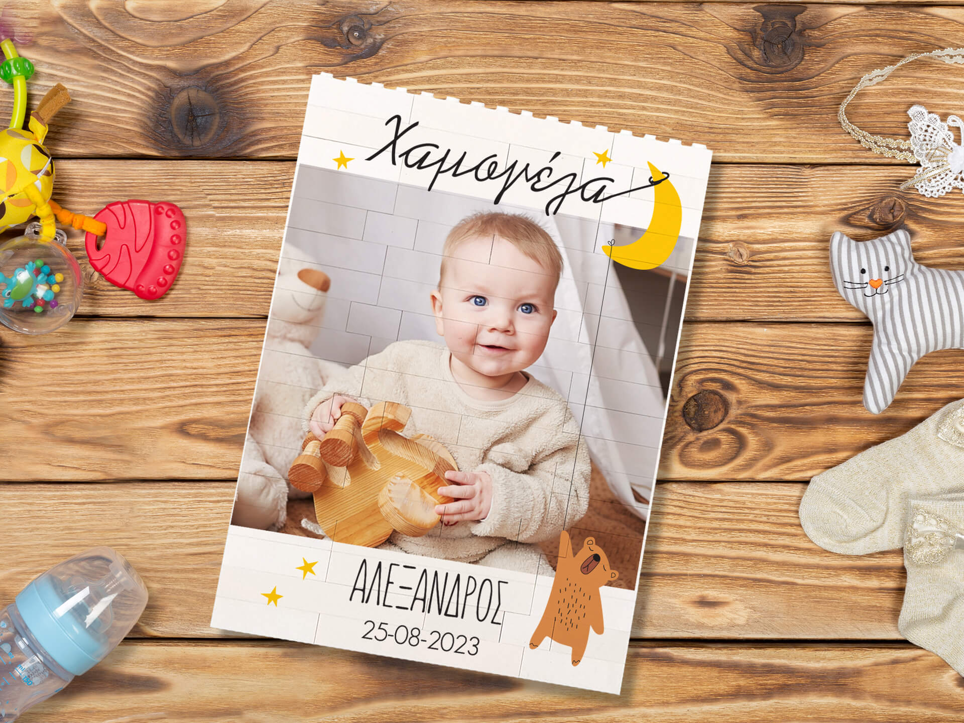 Διακοσμητικό από τουβλάκια “Αρκουδάκι στο φεγγάρι”