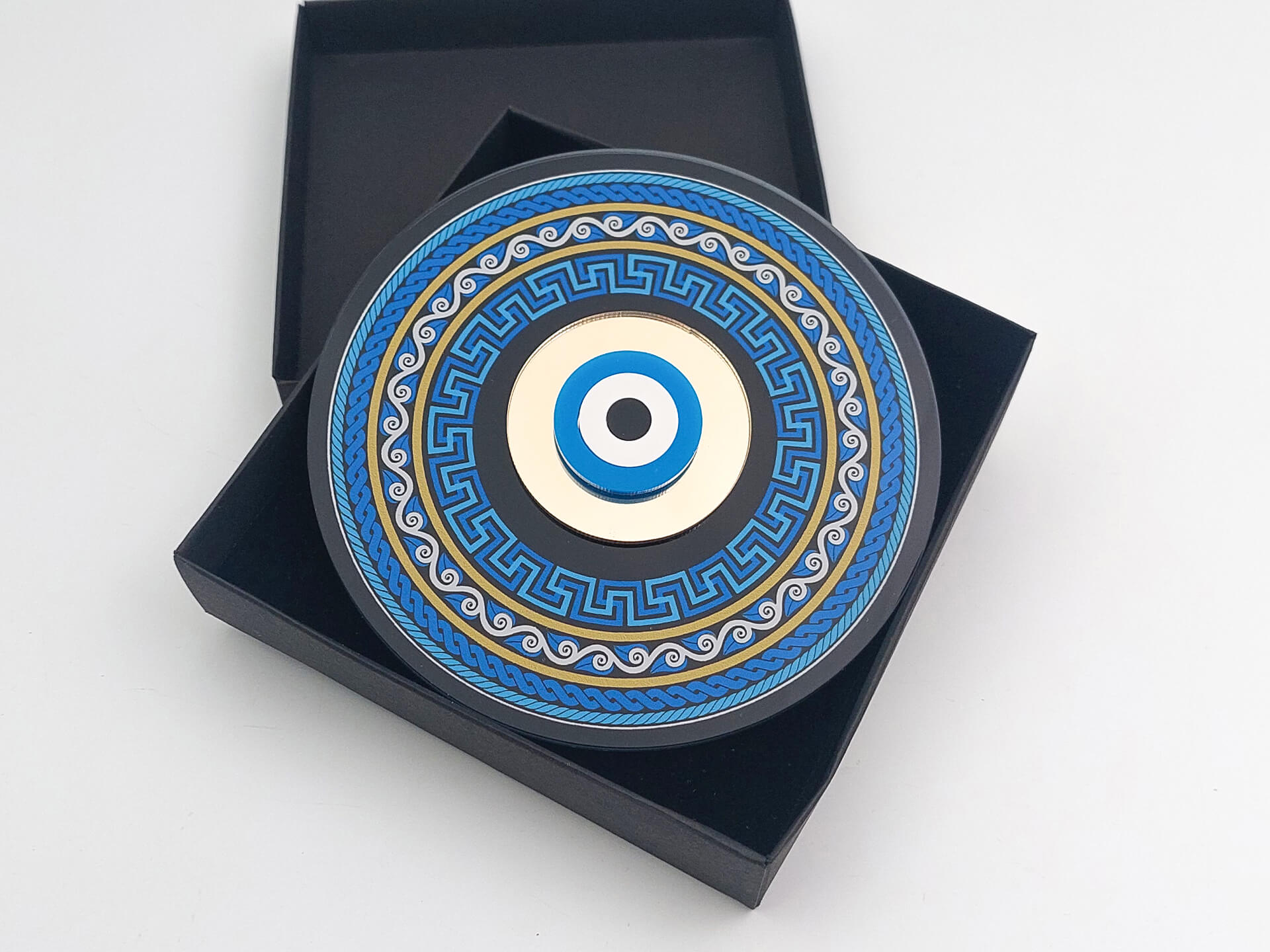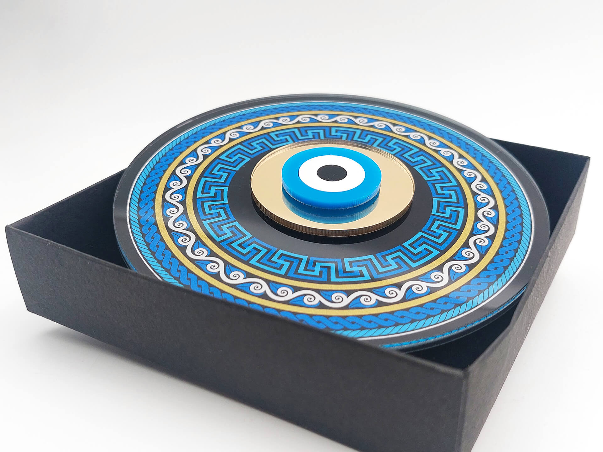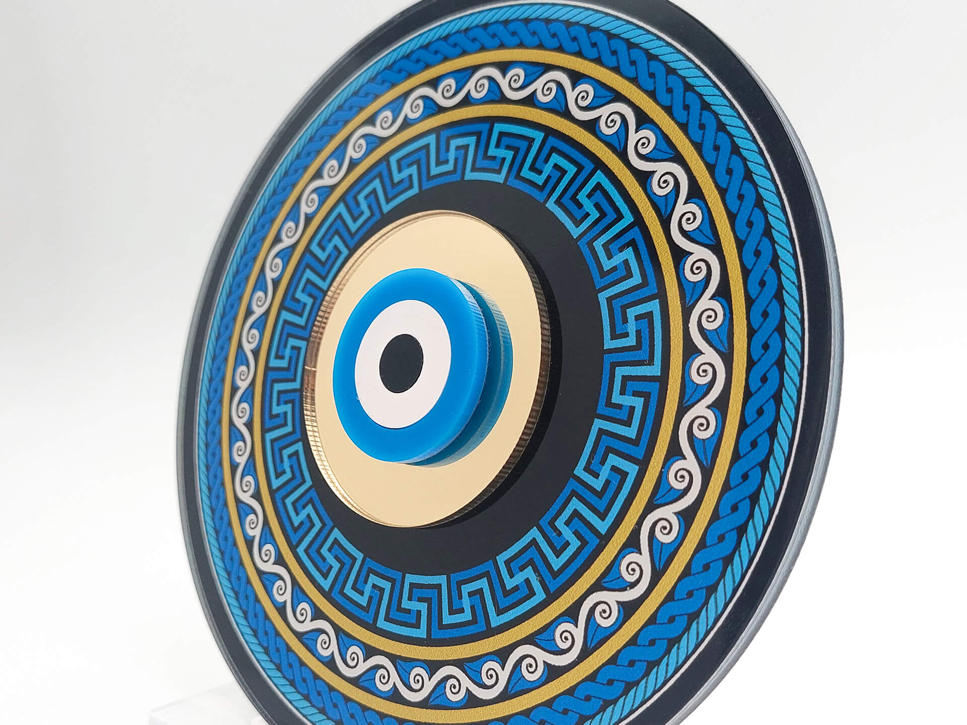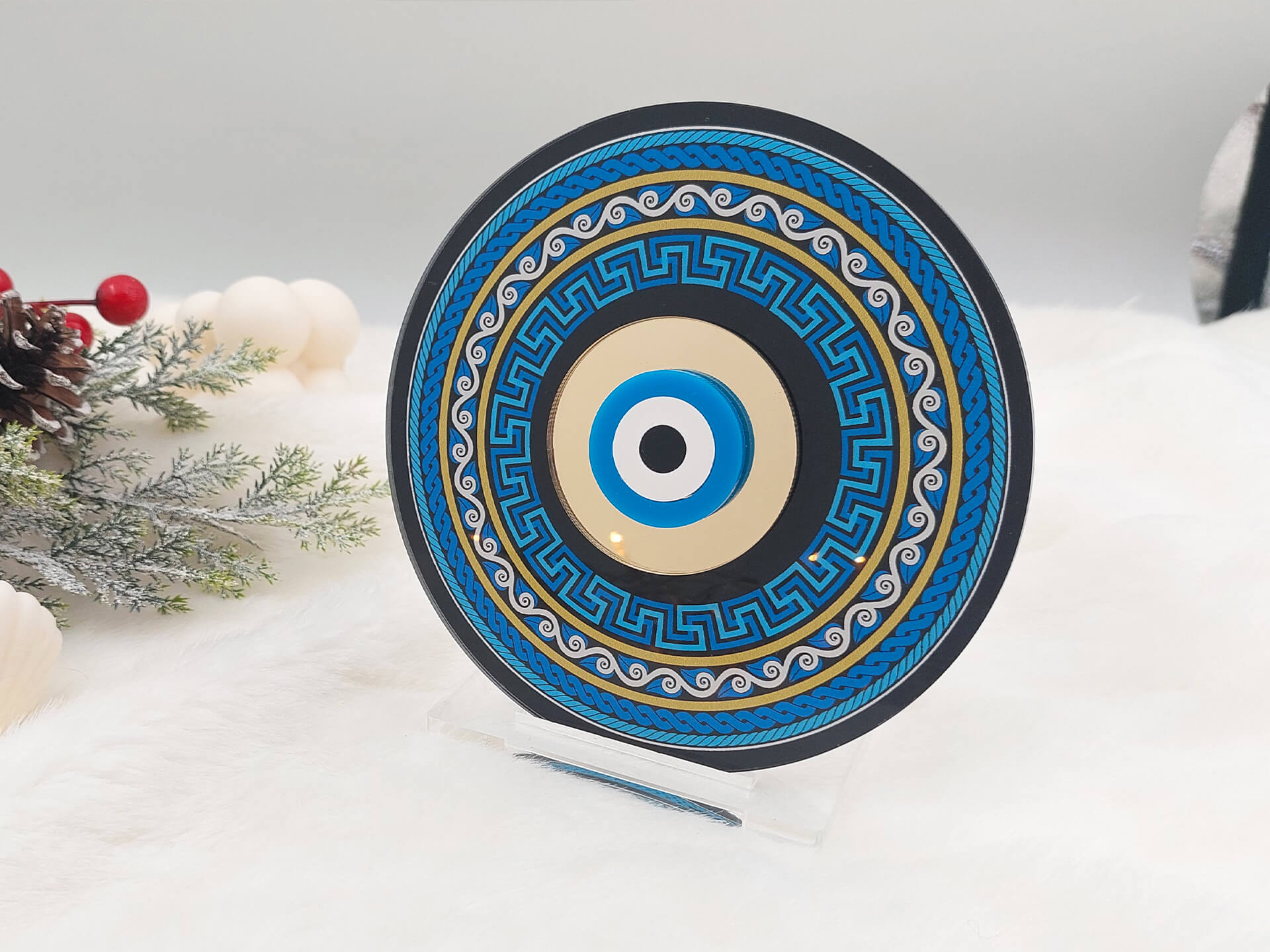 • Υλικά: Διάφανο Ακρυλικό πάχους 4mm με εκτύπωση, Ακρυλικός χρυσός καθρέπτης, λευκό και μαύρο ακρυλικό πάχους 3mm, Βάση στήριξης