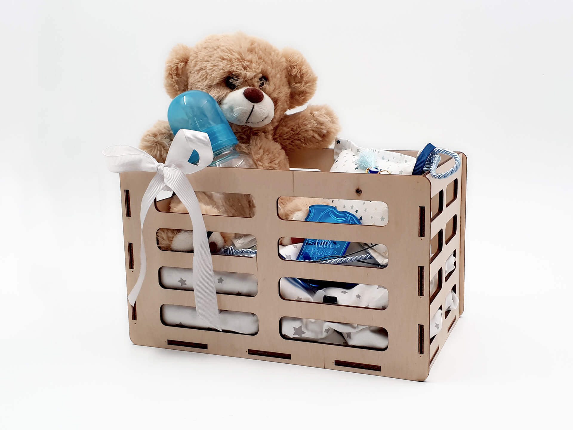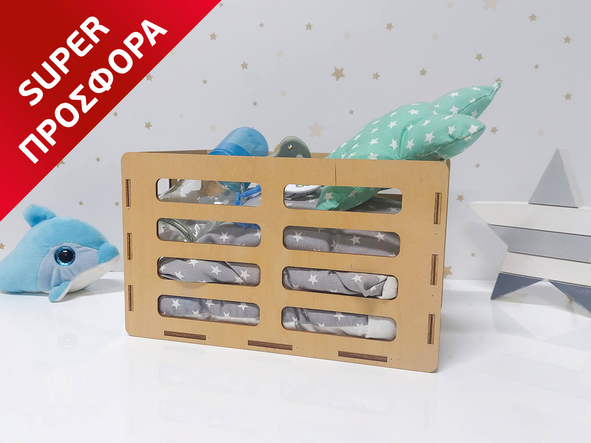 Ξύλινο πολυχρηστικό καλάθι! Μια όμορφη επιλογή για να συνοδεύσετε τα δώρα σας ή να αποθηκεύσετε τα παιχνίδια, τα ρούχα του μωρού σας ή αγαπημένα σας αντικείμενα! Αποτελεί επίσης ιδιαίτερη πρόταση διακόσμησης του γάμου ή της βάπτισης του μωρού σας!