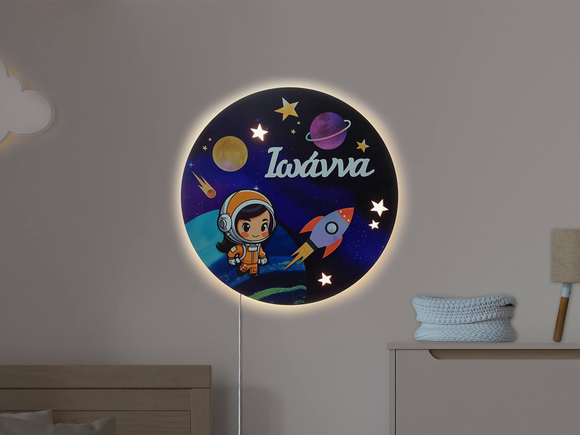 Έγχρωμο επιτοίχιο φωτιστικό που αποτελεί διακοσμητικό την ημέρα και την καλύτερη παρεούλα για το βράδυ. Ο διακριτικός φωτισμός θα δημιουργήσει ένα ζεστό και φιλικό παιδικό δωμάτιο!
