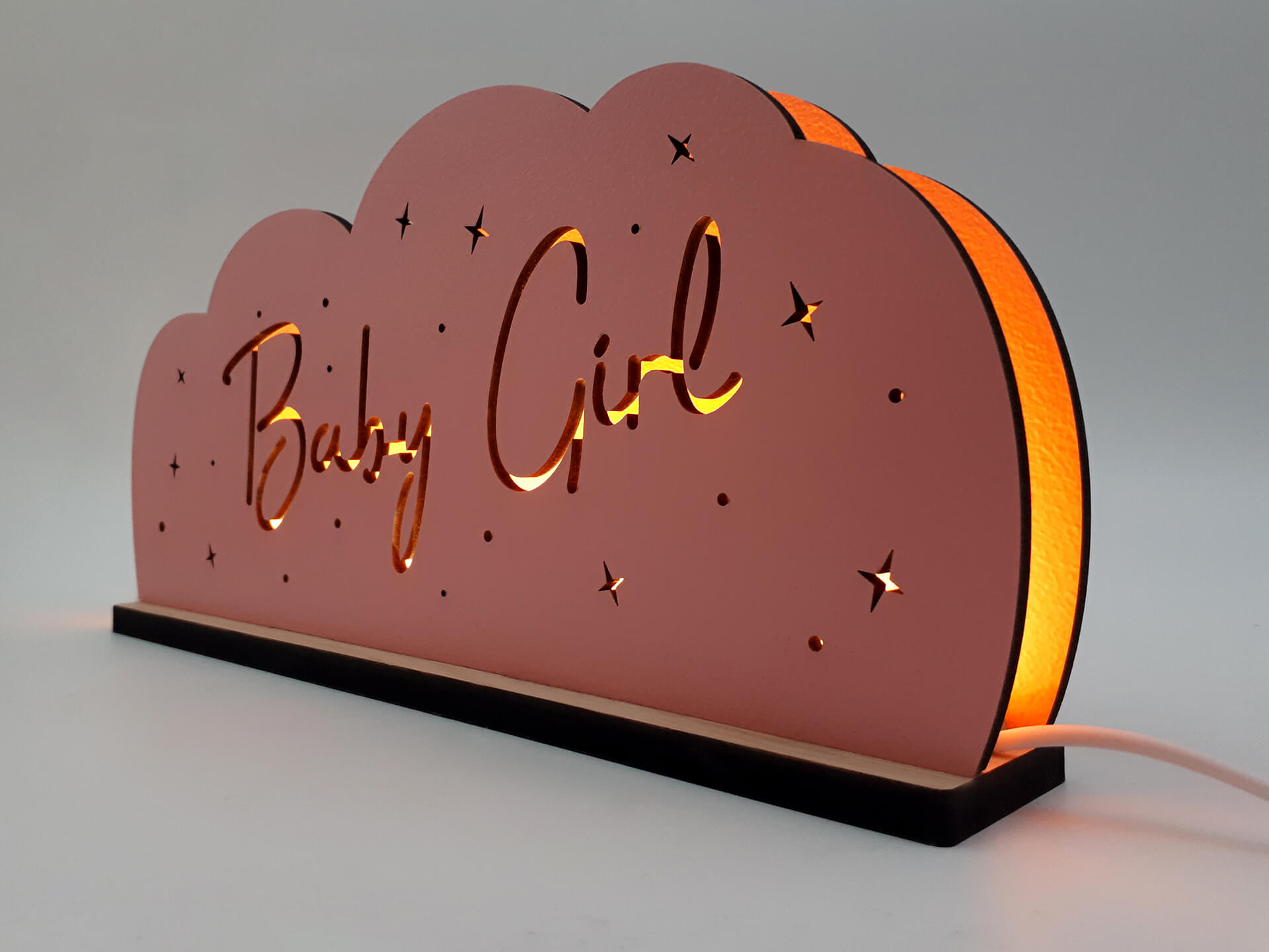 Πρωτότυπο φωτιστικό σύννεφο με κείμενο ''Baby Girl'' για τη διακόσμηση του παιδικού δωματίου. Η καλύτερη επιλογή για να φωτίζει τις νύχτες του μωρού σας!
