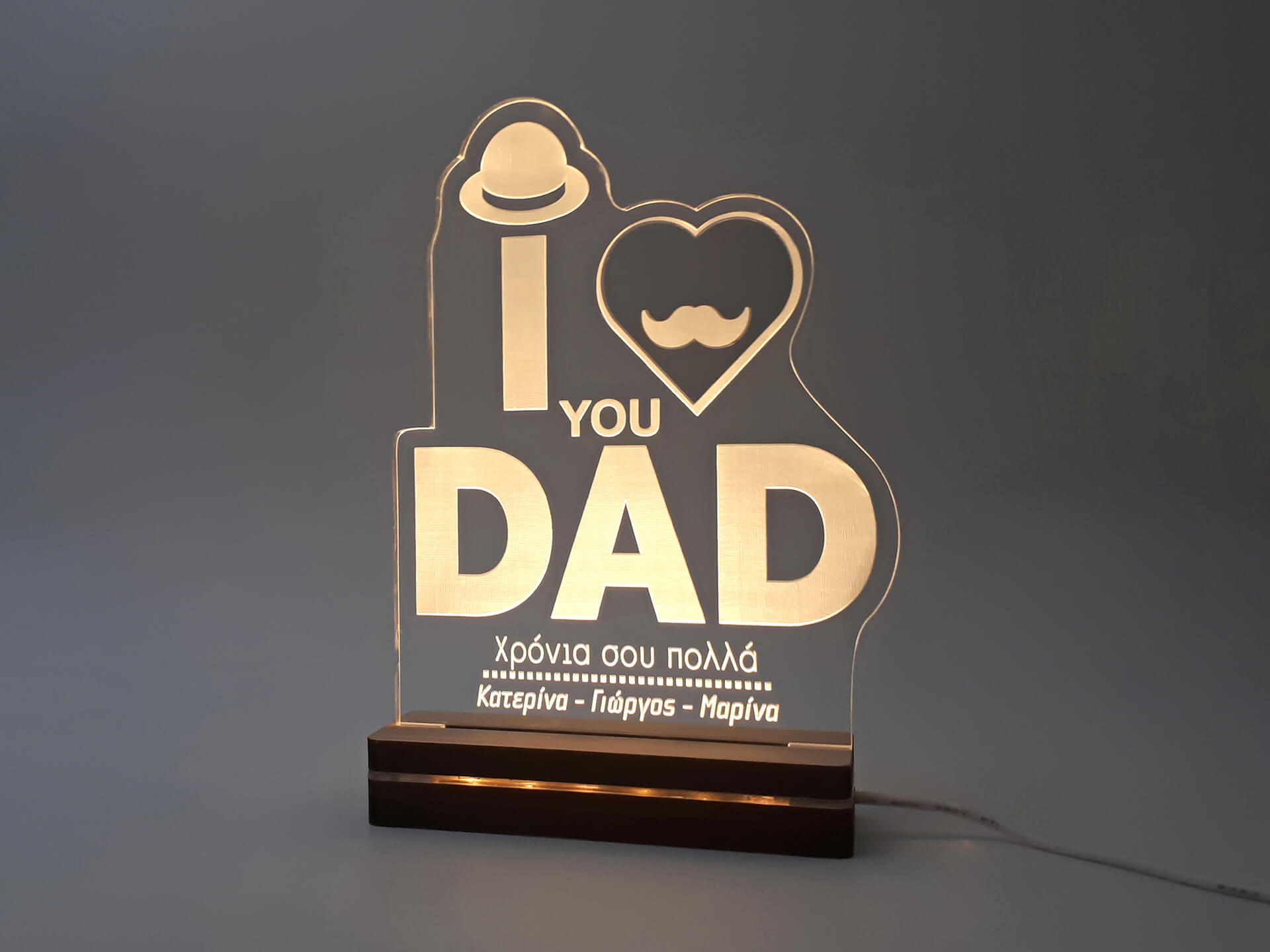 Φωτιστικό Led από ακρυλικό και ξύλινη χειροποίητη βάση δικής μας πρωτοποριακής σχεδίασης και κατασκευής.