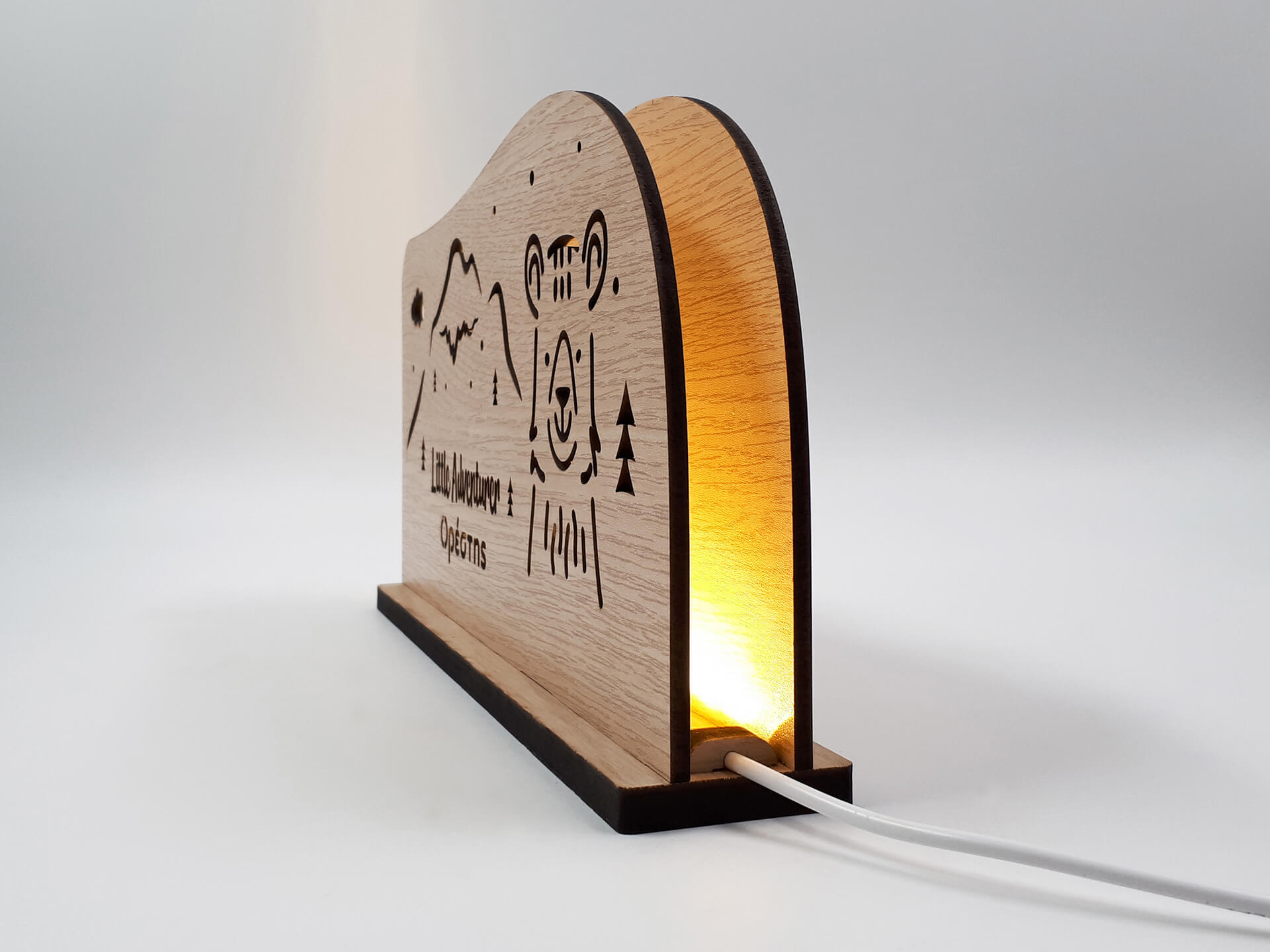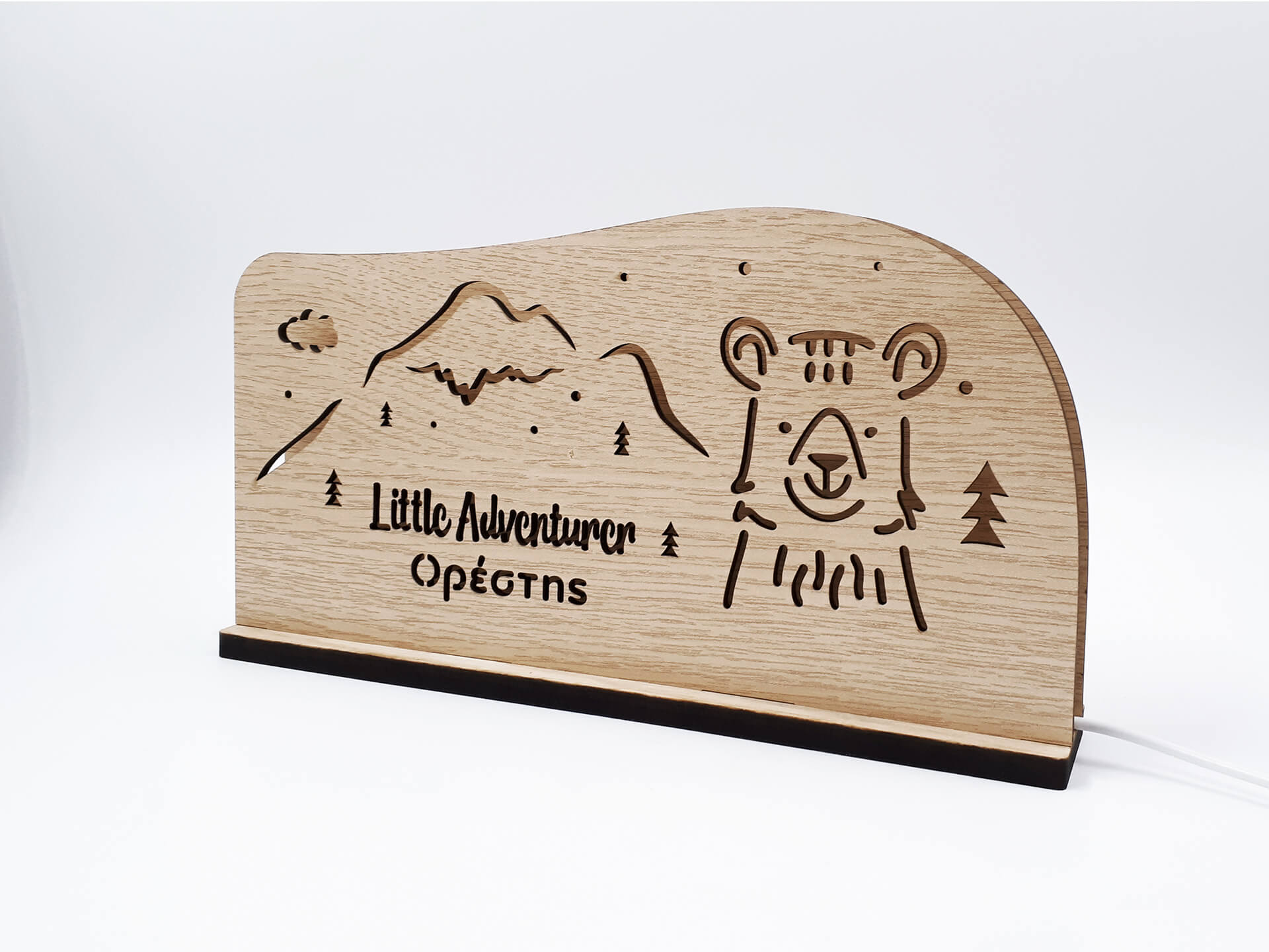 • Υλικά: Led λευκού χρώματος, Ξύλο πάχους 4mm, Χειροποίητη βάση από ξύλο