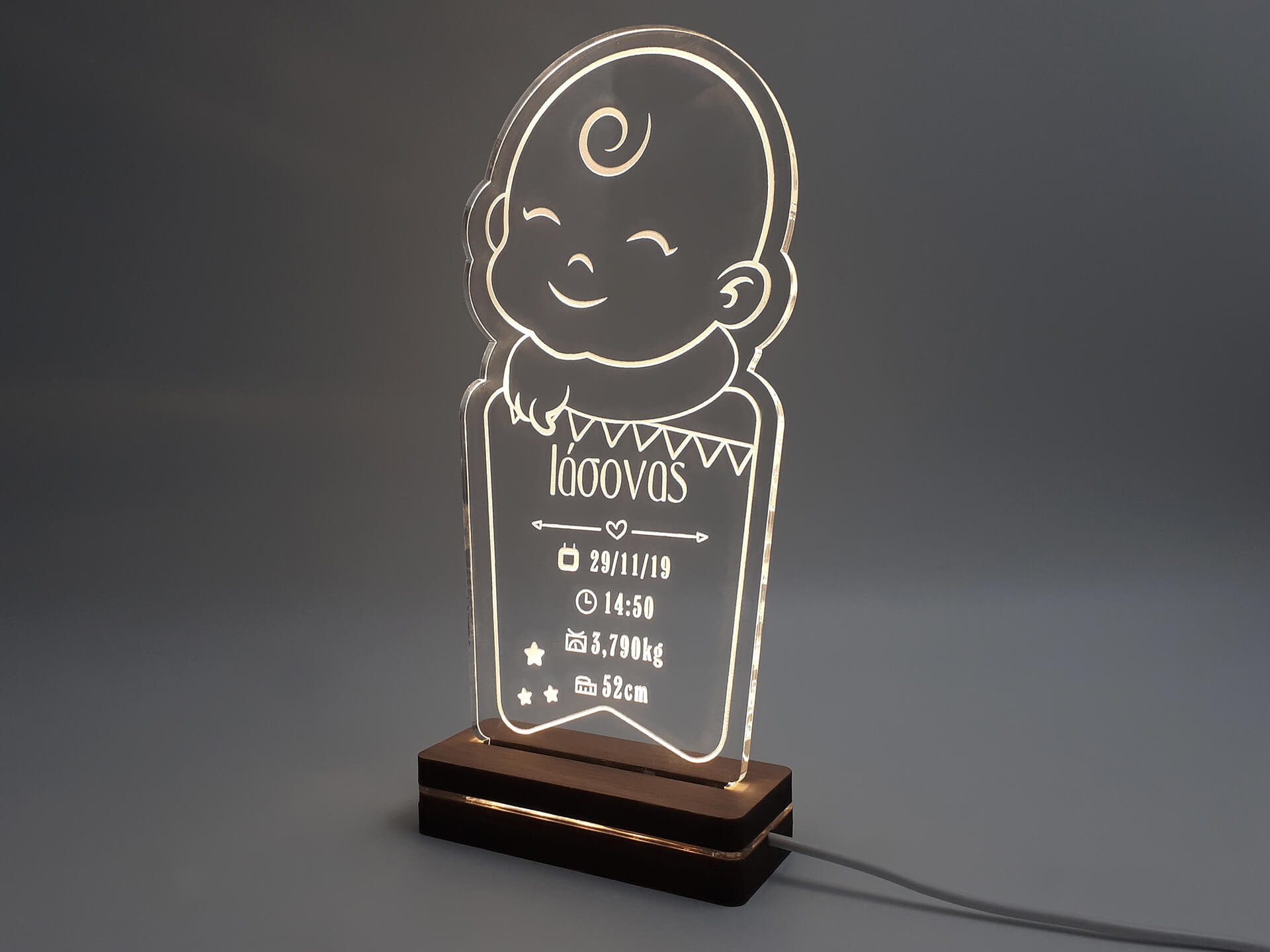 Κρατήστε τα στοιχεία γέννησης του μωρού σας φωτεινά! Πρωτότυπο φωτιστικό μωράκι για να διακοσμήσετε το δωμάτιο του μωρού σας ή μπορείτε να το κάνετε δώρο σε νέους γονείς με τον ερχομό του νέου μέλους!