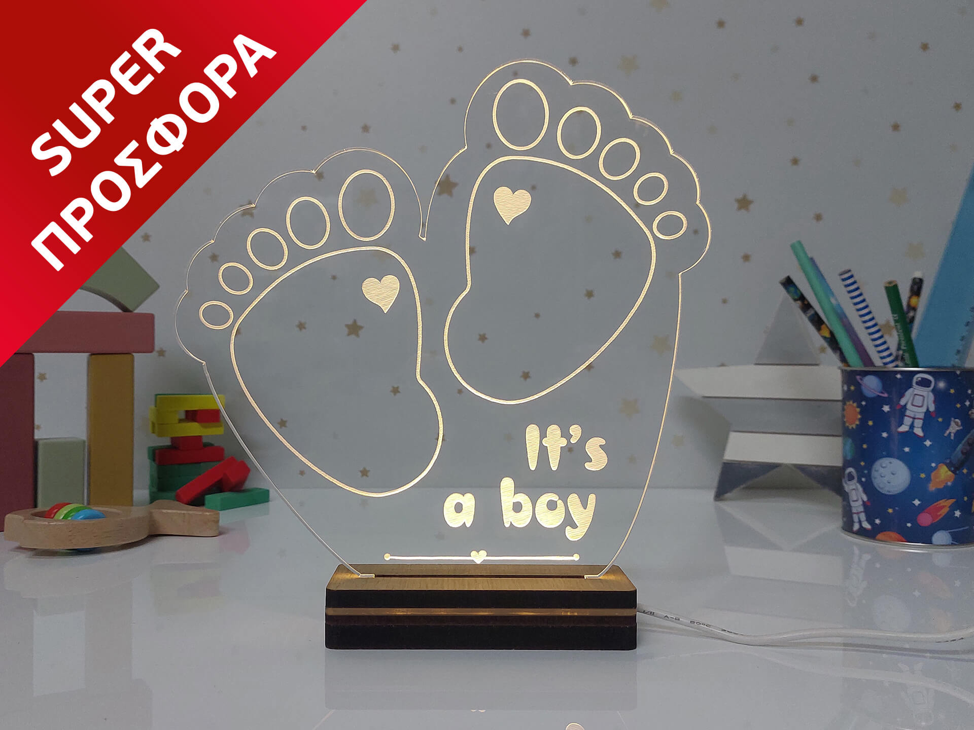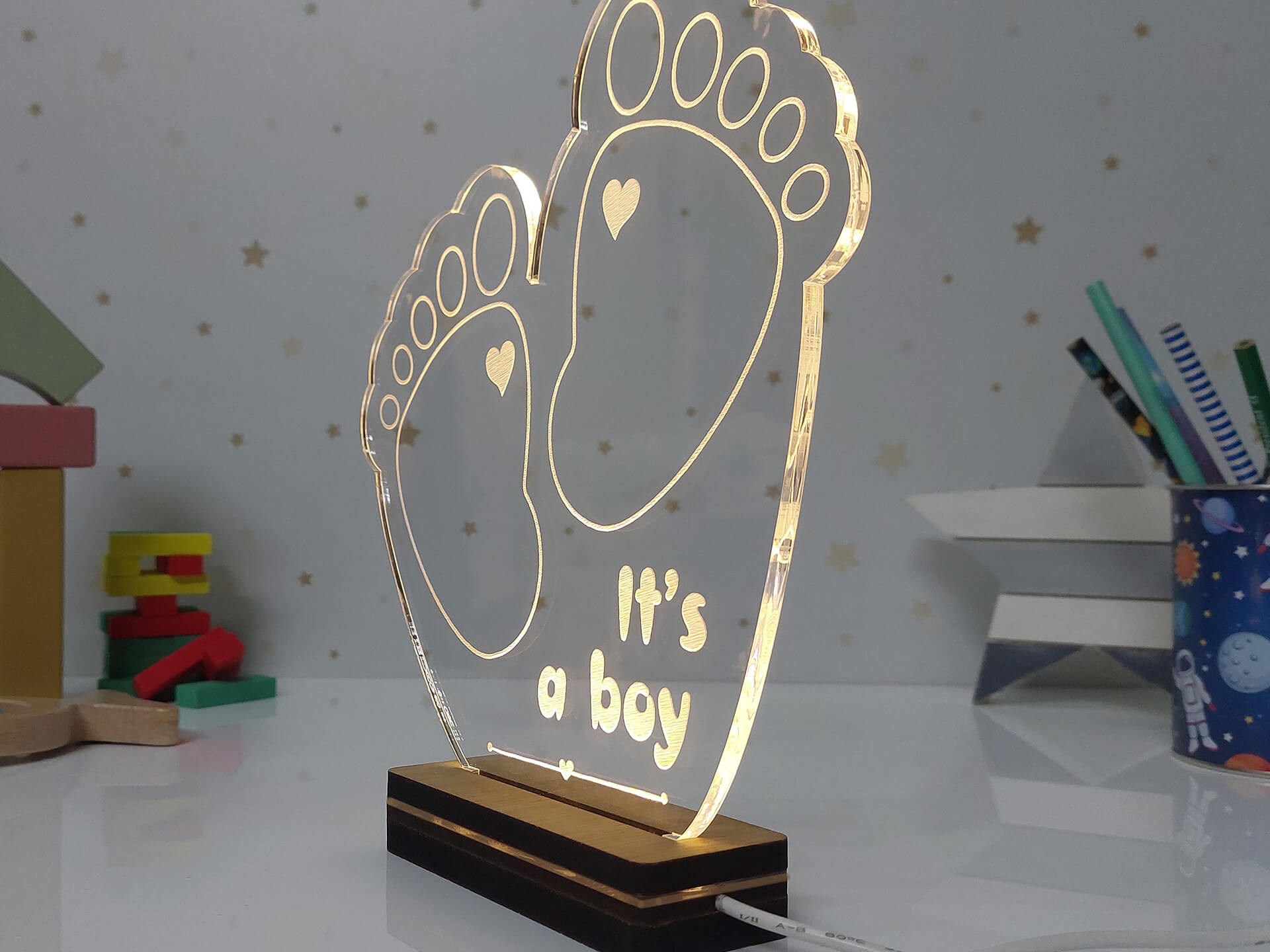 • Υλικά: Led λευκού χρώματος, Ακρυλικό διάφανο πάχους 6mm, Χειροποίητη βάση από ξύλο και ακρυλικό