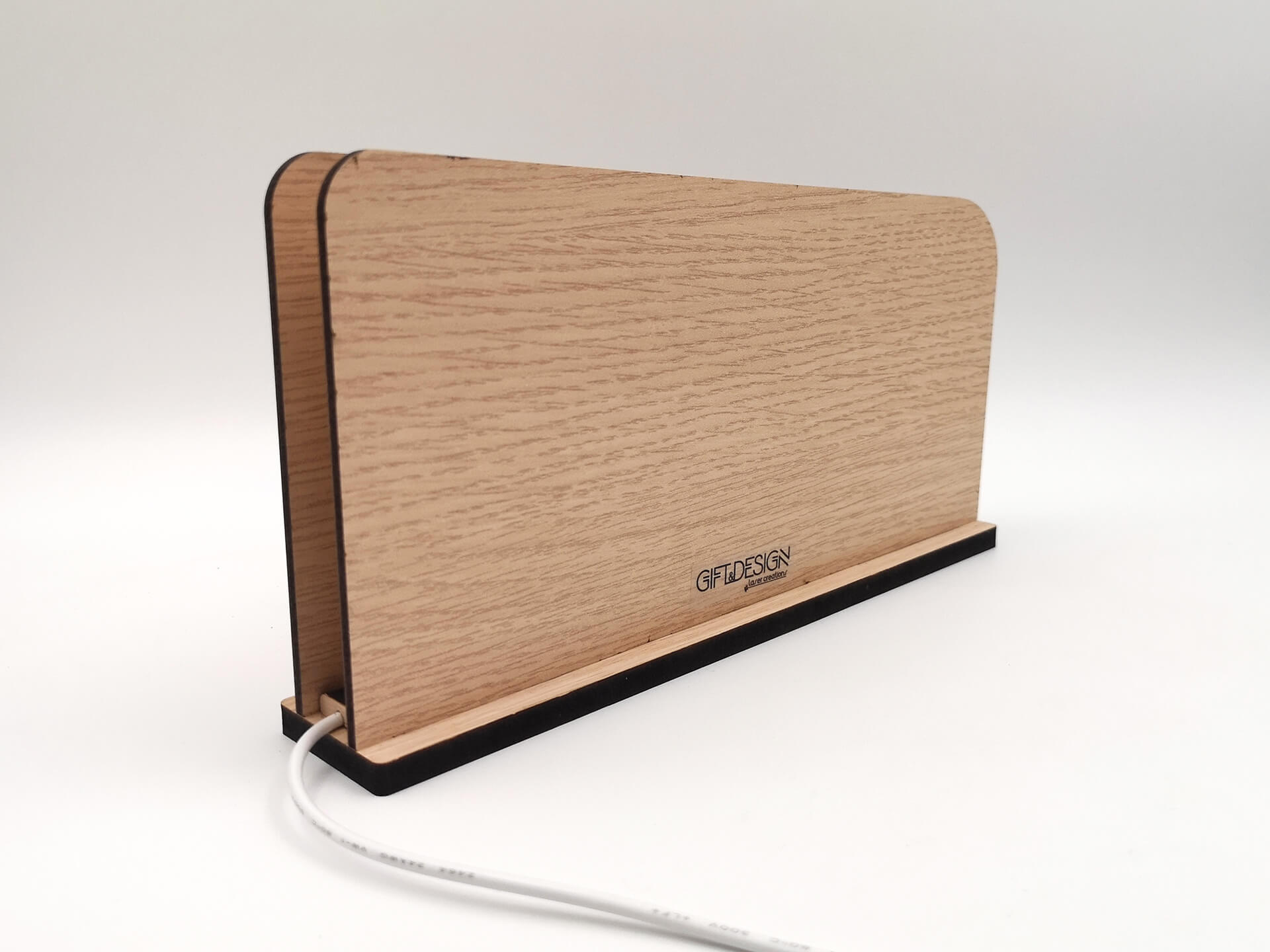 • Υλικά: Led λευκού χρώματος, Ξύλο πάχους 4mm, Χειροποίητη βάση από ξύλο.