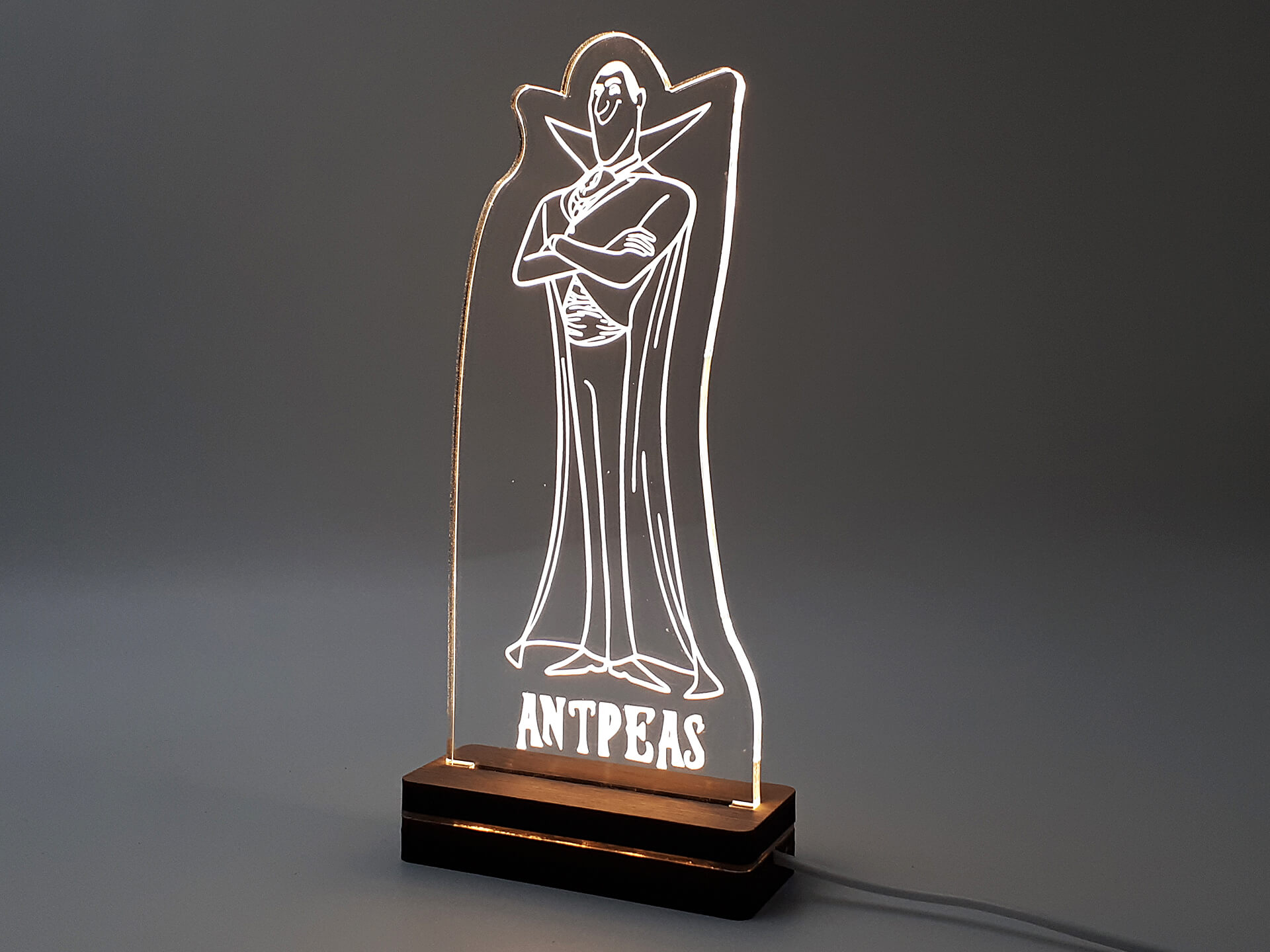 • Υλικά: Led λευκού χρώματος, Ακρυλικό διάφανο πάχους 6mm, Χειροποίητη βάση από ξύλο και ακρυλικό