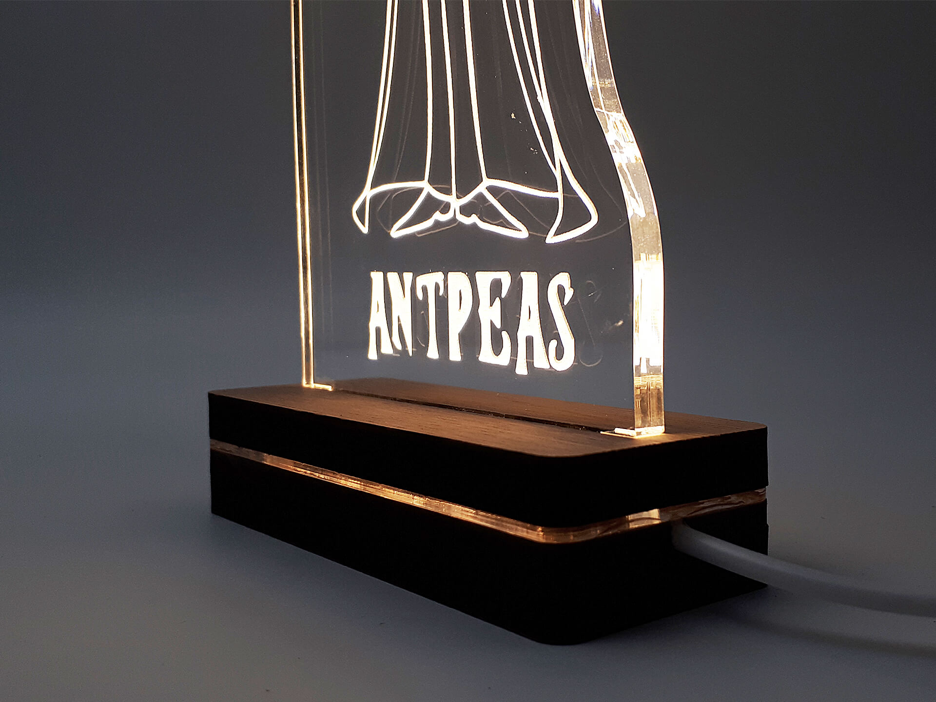 Φωτιστικό Led από ακρυλικό και ξύλινη χειροποίητη βάση δικής μας πρωτοποριακής σχεδίασης και κατασκευής.