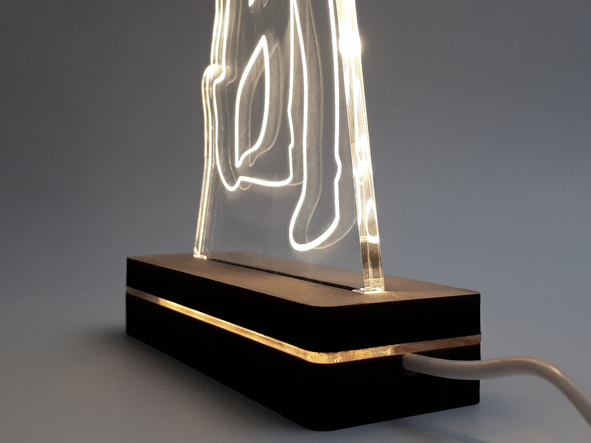 Φωτιστικό Led από ακρυλικό και ξύλινη χειροποίητη βάση δικής μας πρωτοποριακής σχεδίασης και κατασκευής.