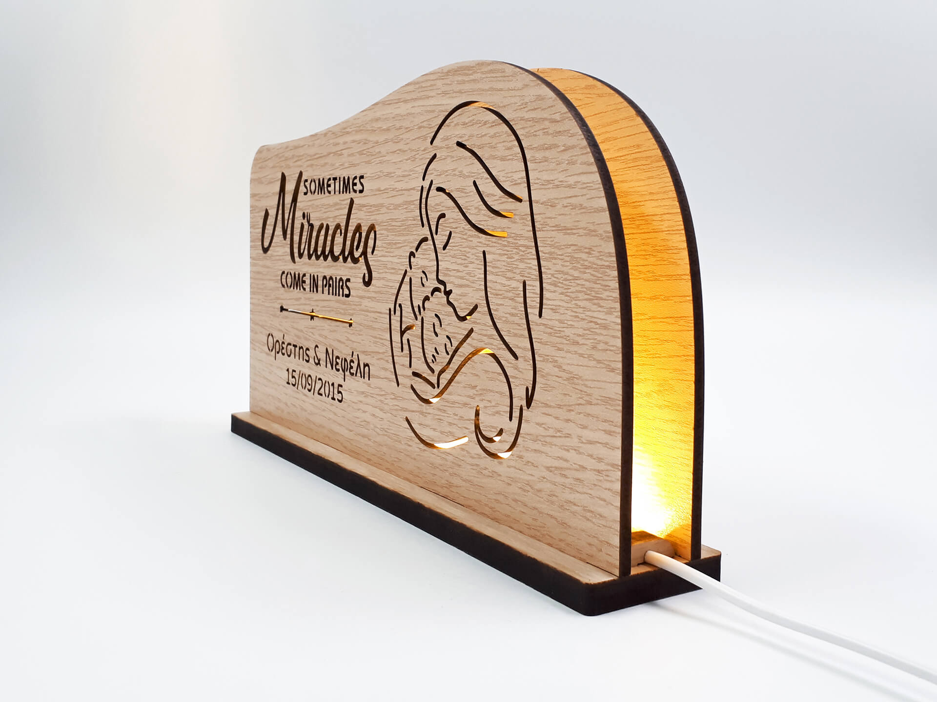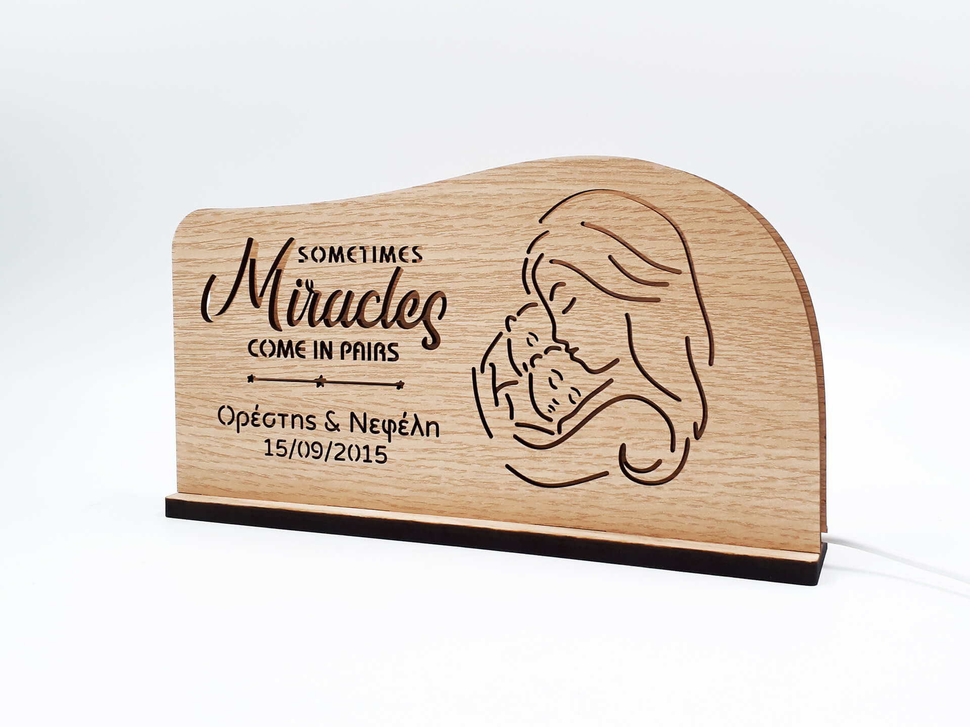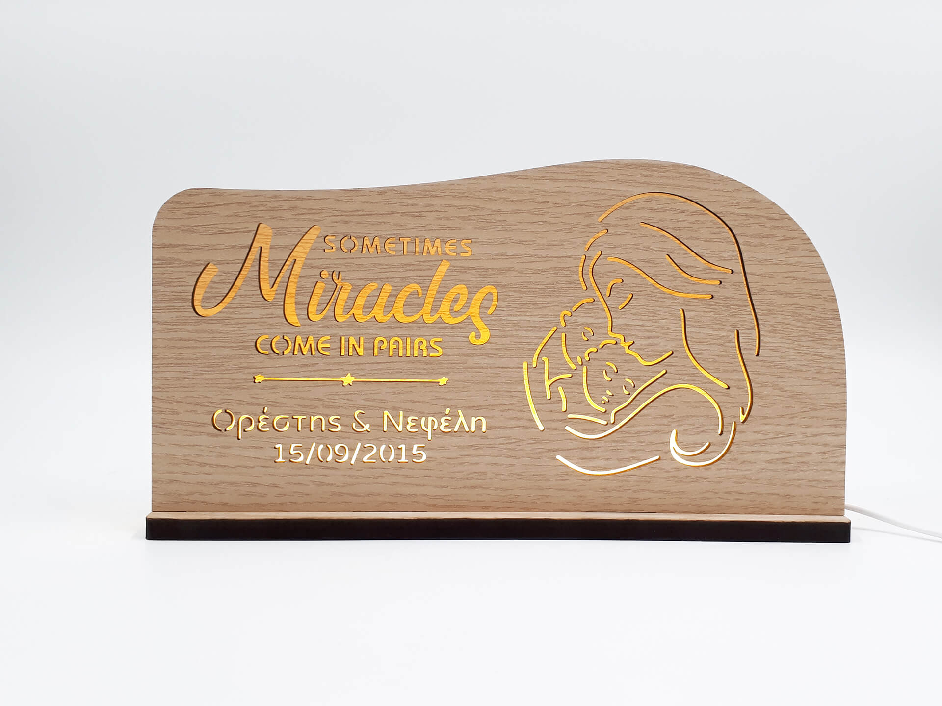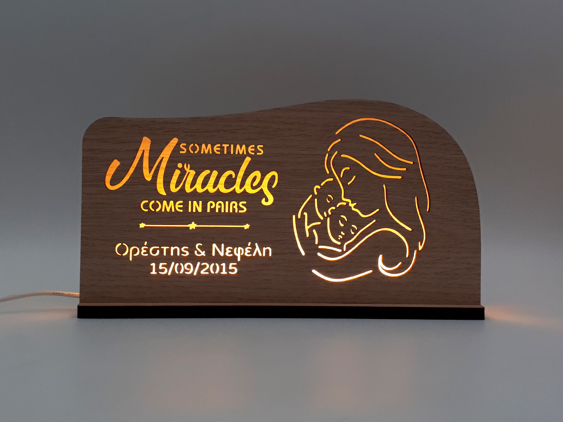 Πρωτότυπo ξύλινο φωτιστικό με θέμα δίδυμα μωράκια! Ένα ιδιαίτερο δώρο για τις μέλλουσες μανούλες!
