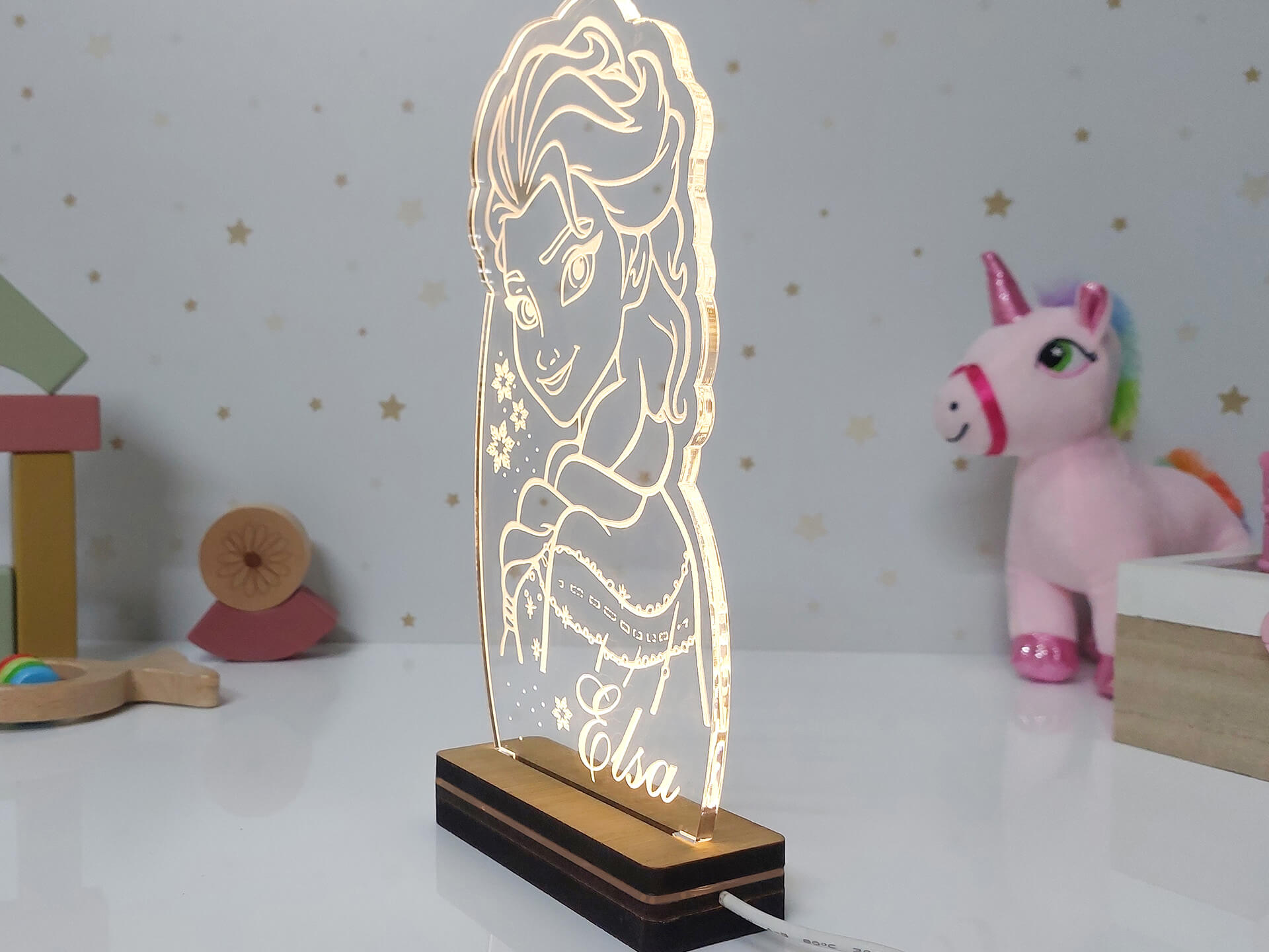 • Υλικά: Led λευκού χρώματος, Ακρυλικό διάφανο πάχους 6mm, Χειροποίητη βάση από ξύλο και ακρυλικό