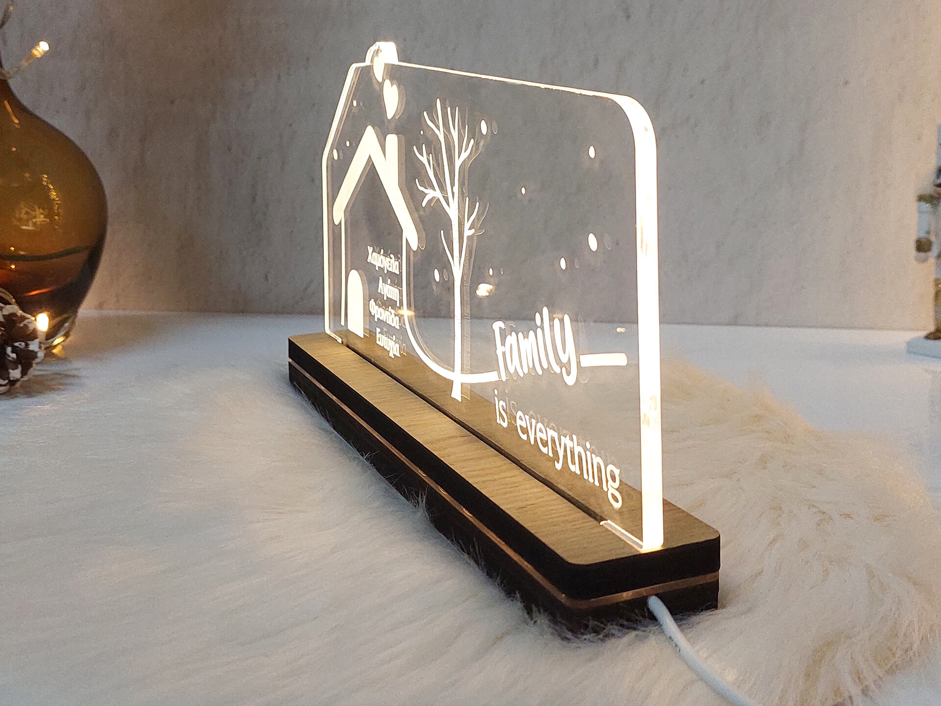 • Υλικά: Led λευκού χρώματος, Ακρυλικό διάφανο πάχους 6mm, Χειροποίητη βάση από ξύλο και ακρυλικό